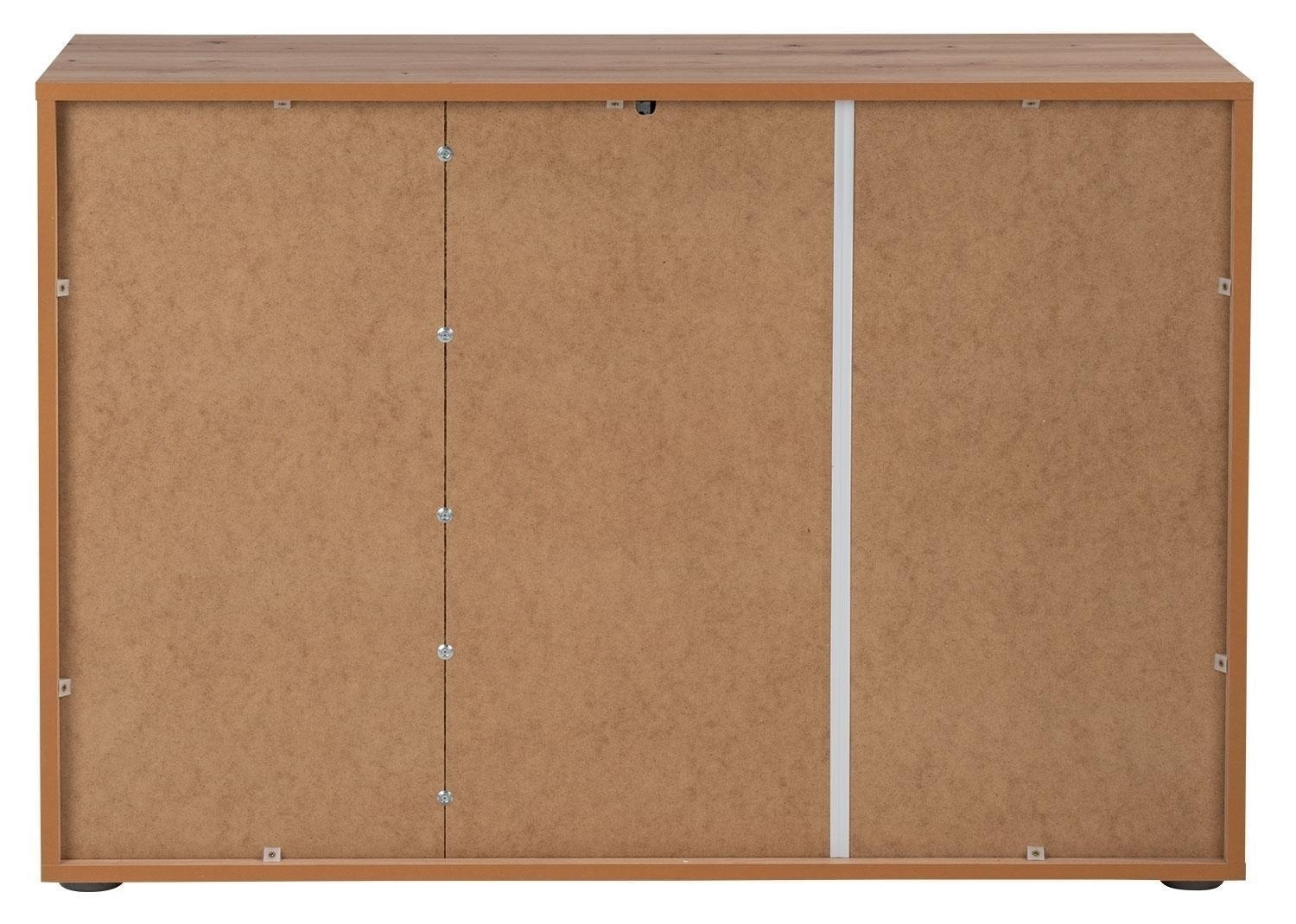 Die Kommode in Artisan Eiche Dekor verfügt über einen 3-fach höhenverstellbaren Einlegeboden. Dies ermöglicht eine optimale Anpassung an die jeweiligen Bedürfnisse.