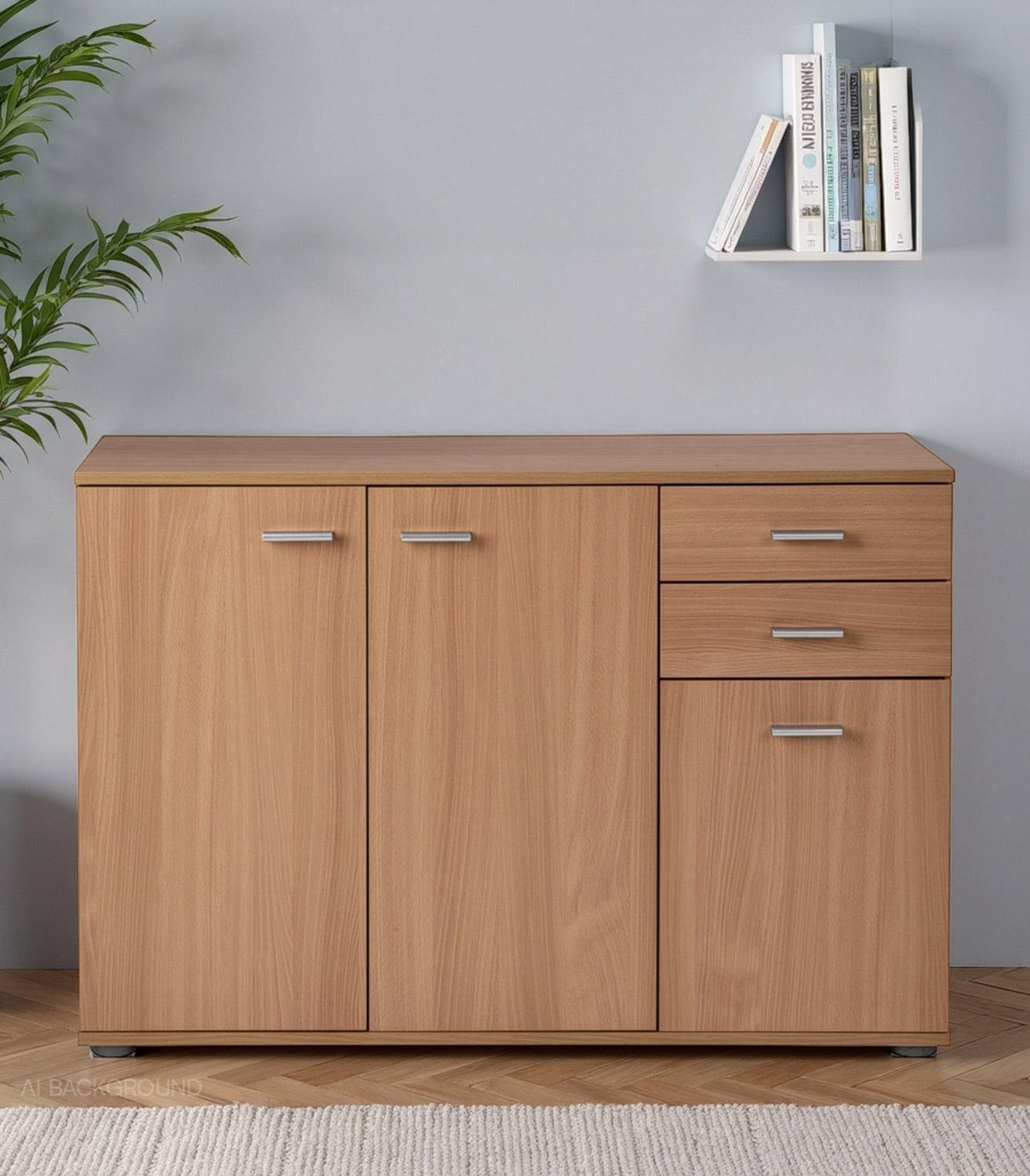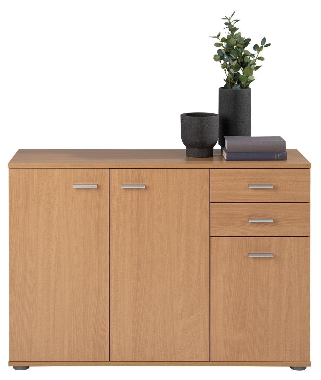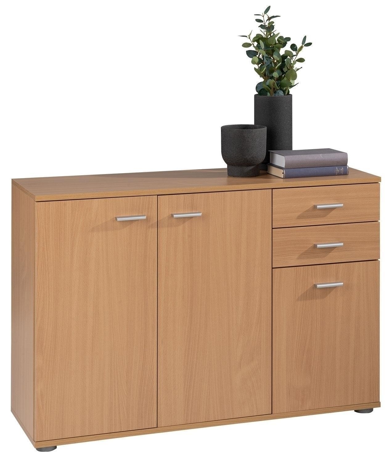 Die Kommode in Buche Dekor verfügt über einen 3-fach höhenverstellbaren Einlegeboden. Dies ermöglicht eine optimale Anpassung an die jeweiligen Bedürfnisse.