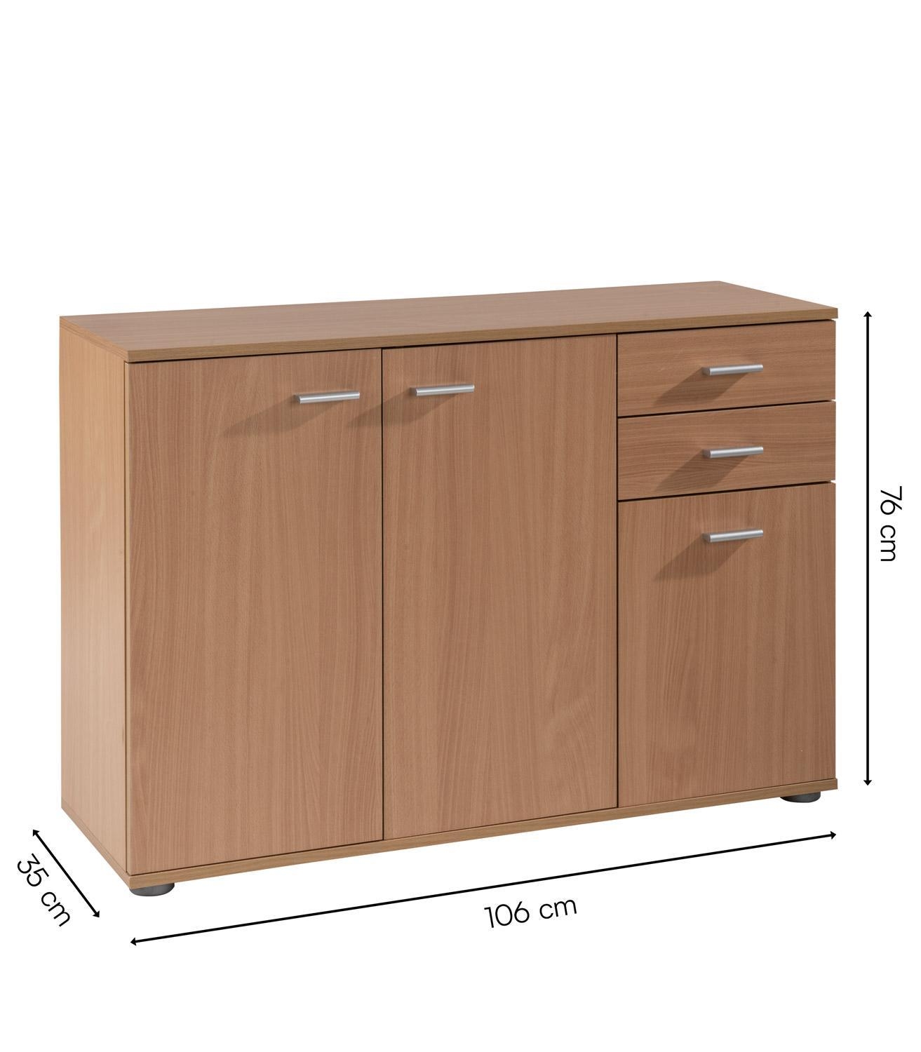 Buche Dekor - B 106 cm - 3 Türen - 2 Schubladen -1 Einlegeboden