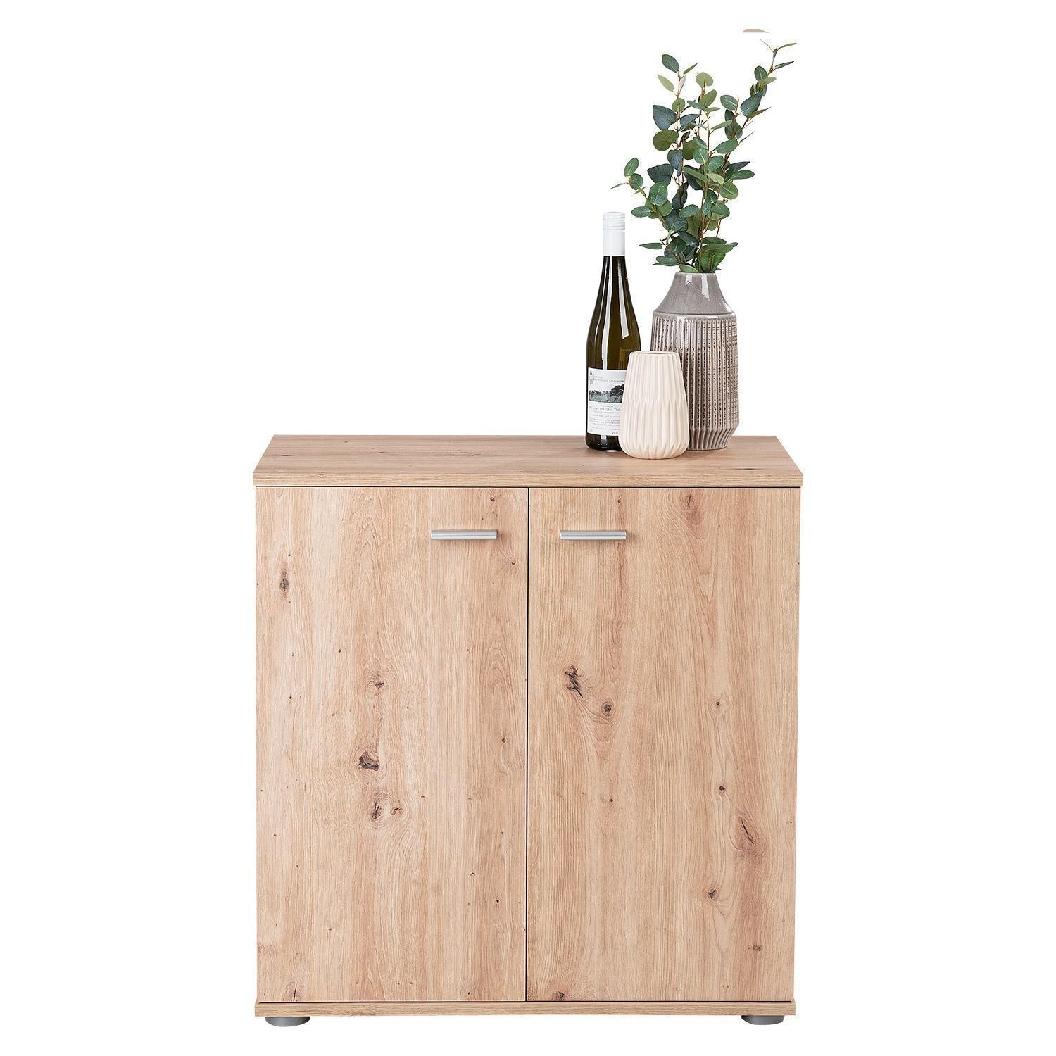 Die Kommode SALLY in Artisan Eiche Dekor verfügt über einen 3-fach höhenverstellbaren Einlegeboden. Dies ermöglicht eine optimale Anpassung an die jeweiligen Bedürfnisse.