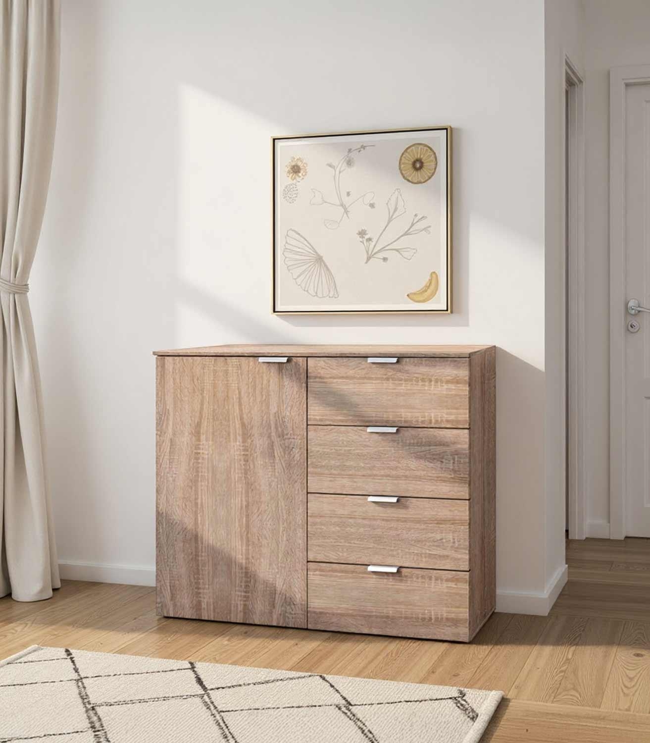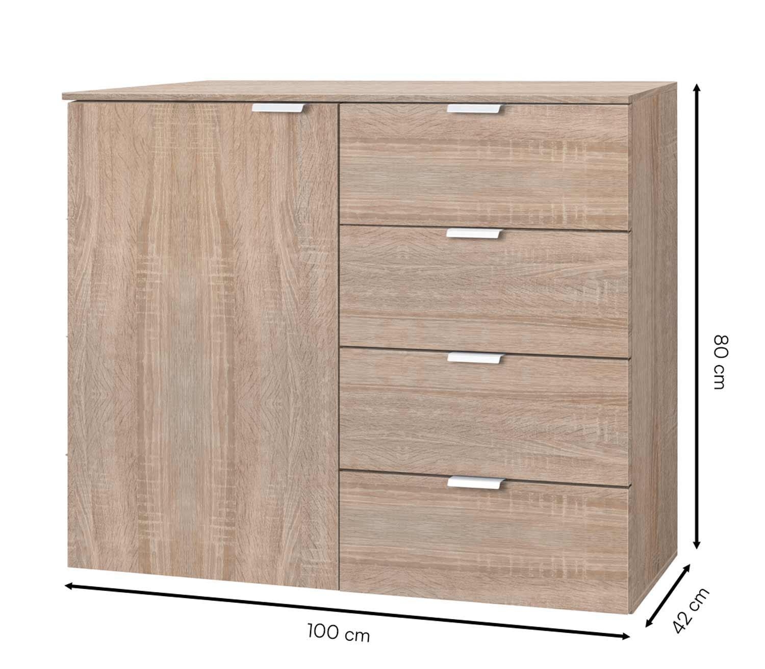 Eiche Sonoma Dekor - B 100 cm - 4 Schubladen - 1 Tür