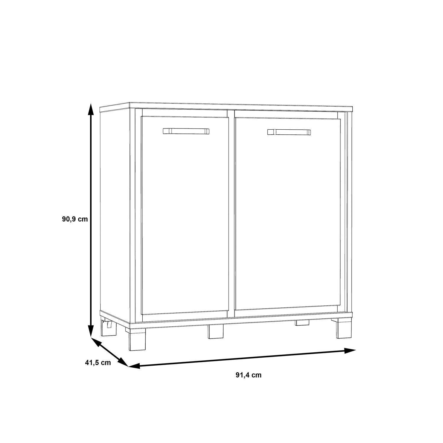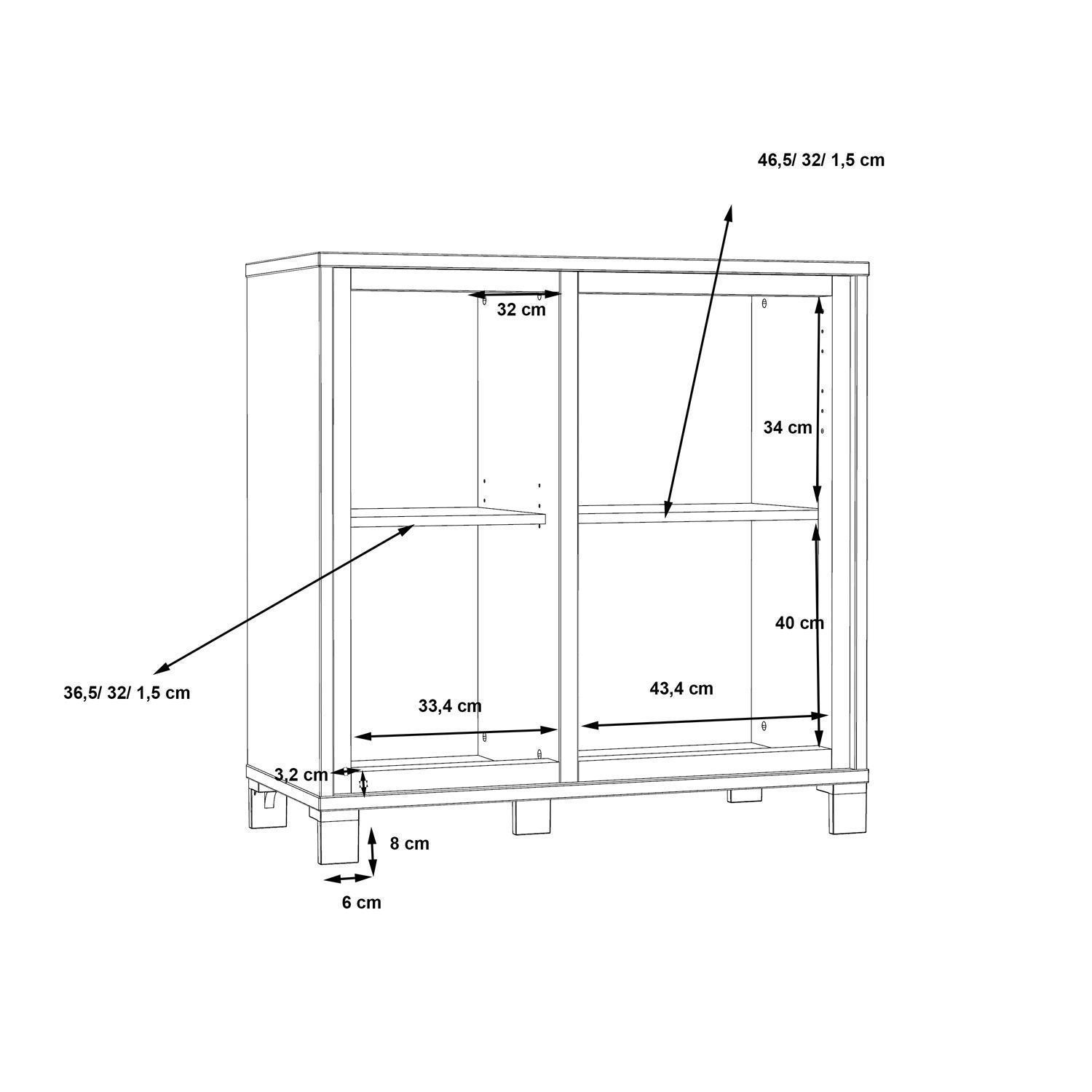 | Lieferumfang: | 1 Kommode mit 2 Türen und 2 mehrfach höhenverstellbaren Einlegeböden |