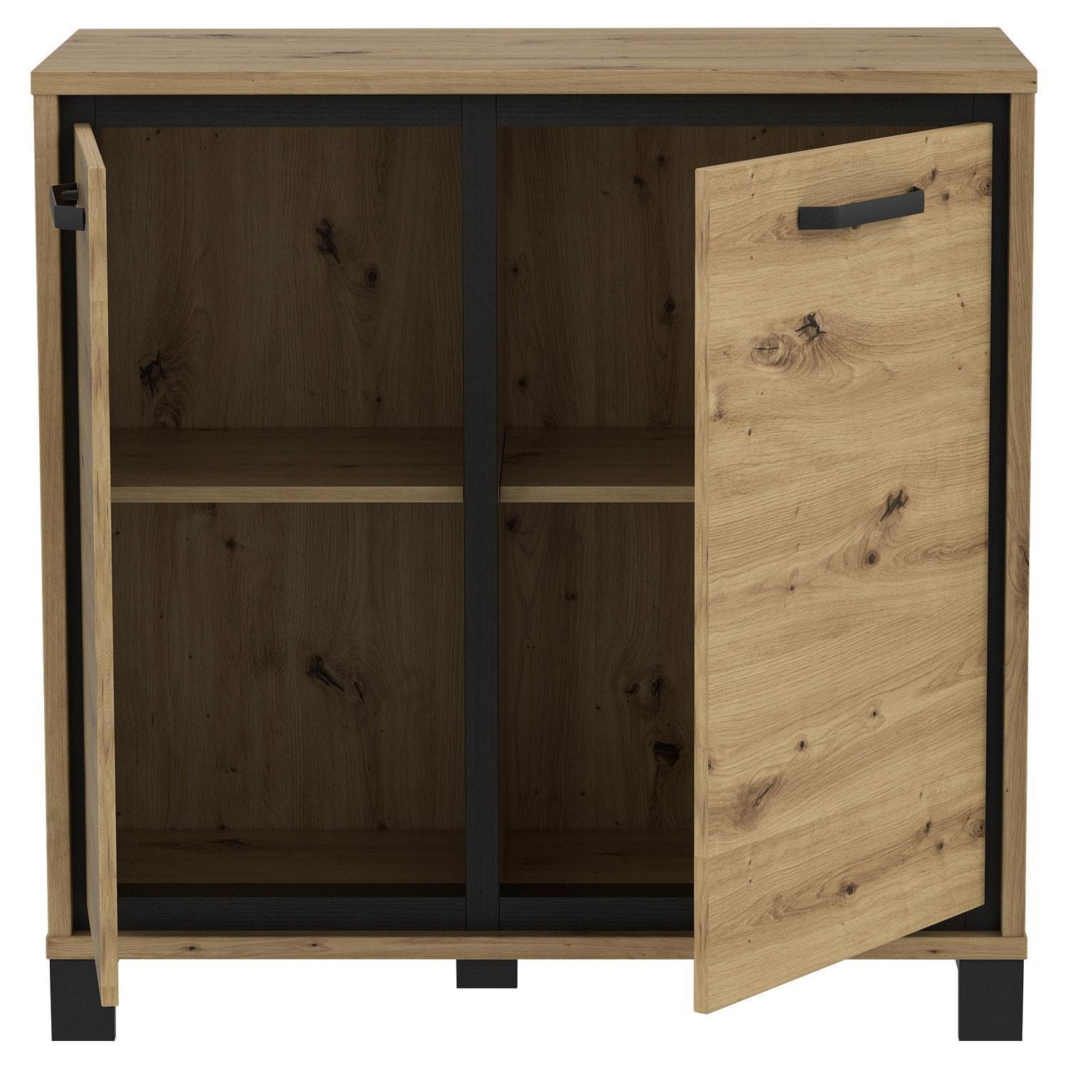 92 x 92 cm - 2 Türen - Artisan Eiche Dekor - Schwarz