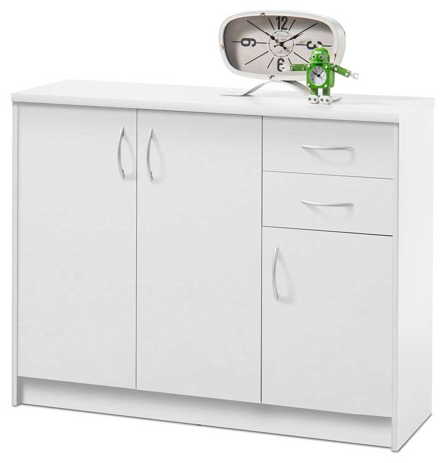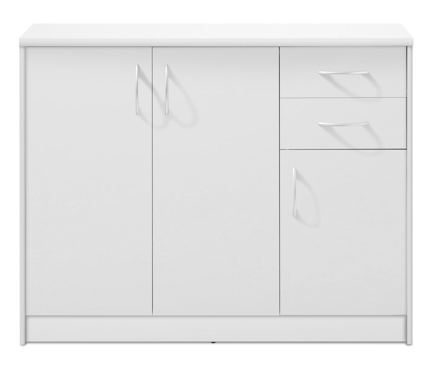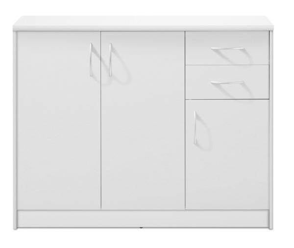 Weiß matt - 109 x 86 cm - 3 Türen - 2 Schubladen - 3 Einlegeböden