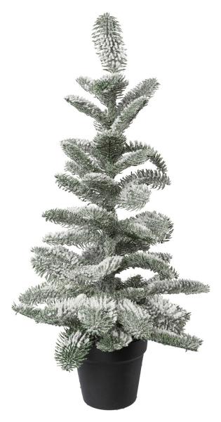 H 67 cm - Grün - Weiß - Kunststoff - beschneit - mit Übertopf