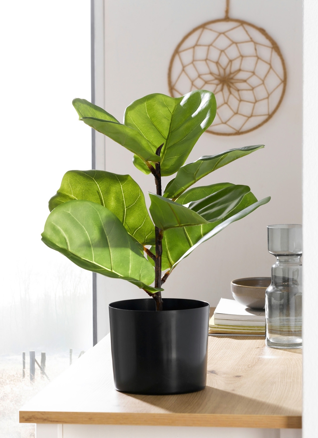 | Lieferumfang: | 1 künstlicher Ficus Lyrata mit schwarzem Kunststofftopf |