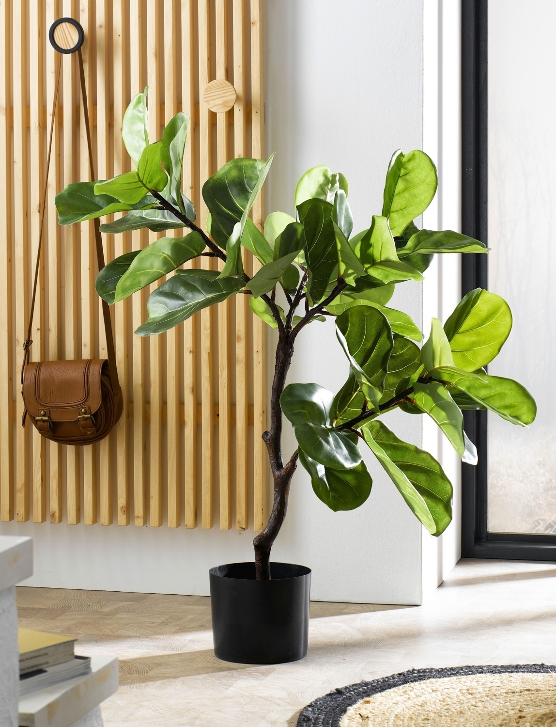 | Lieferumfang: | 1 künstlicher Ficus Lyrata mit schwarzem Kunststofftopf |