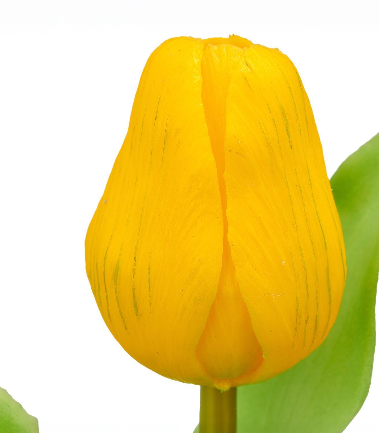 Die künstliche Tulpe SANDRINE ist in Grün gehalten und mit einer Blüte in der Farbe Gelb versehen. Die naturgetreue Kunstpflanze besteht aus Kunststoff. Die Gesamthöhe beläuft sich auf 31 cm.