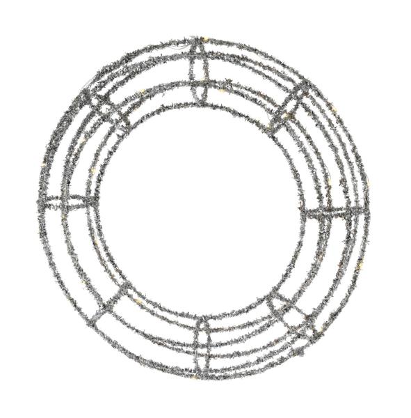 Der LED-Dekokranz KARLOST in Silbergrau ist ein festliches Dekorationselement mit einem Durchmesser von 30 cm. Er ist mit 20 warmweißen LEDs ausgestattet, die für eine stimmungsvolle Beleuchtung sorgen. Der Kranz verfügt über einen praktischen 6-Stunden-Timer, der eine automatische Steuerung ermöglicht. Da er batteriebetrieben ist und 2 AA-Batterien benötigt, kann er flexibel in jedem Raum platziert werden.