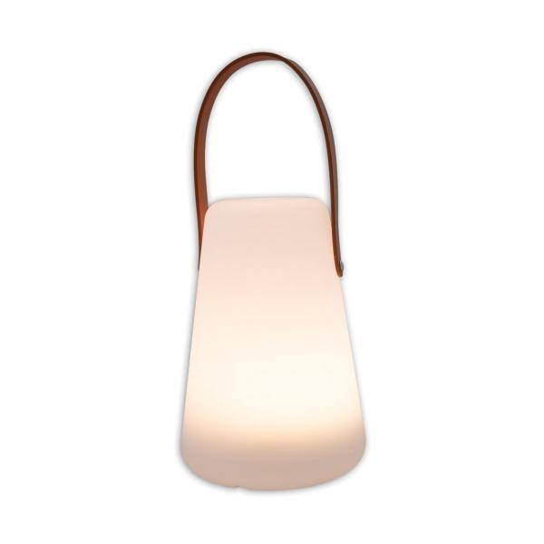 Die LED-Laterne KLEAPS besteht aus Kunststoff und ist in Weiß gehalten. Sie ist mit einem braunen Griff aus Leder ausgestattet. Die Laterne verfügt über eine Timerfunktion und wird batteriebetrieben. Der Durchmesser beträgt 13,5 cm, die Höhe liegt bei 20 cm. Die Batterien sind nicht im Lieferumfang enthalten.