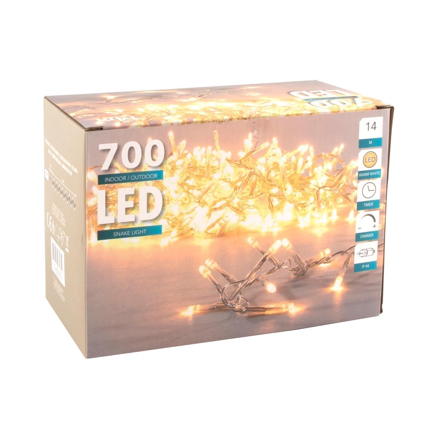 Die LED-Lichterkette TIBO aus transparentem Kunststoff bietet mit ihrer Gesamtlänge von 14 Metern vielseitige Einsatzmöglichkeiten. Sie ist dimmbar und verfügt über einen integrierten Timer, der eine einfache Steuerung ermöglicht. Dank der IP44-Zertifizierung ist die Lichterkette für den Einsatz im Außenbereich geeignet und trotzt damit auch widrigen Wetterbedingungen. Mit 700 LED-Leuchtmitteln sorgt sie für eine gleichmäßige und stimmungsvolle Beleuchtung.