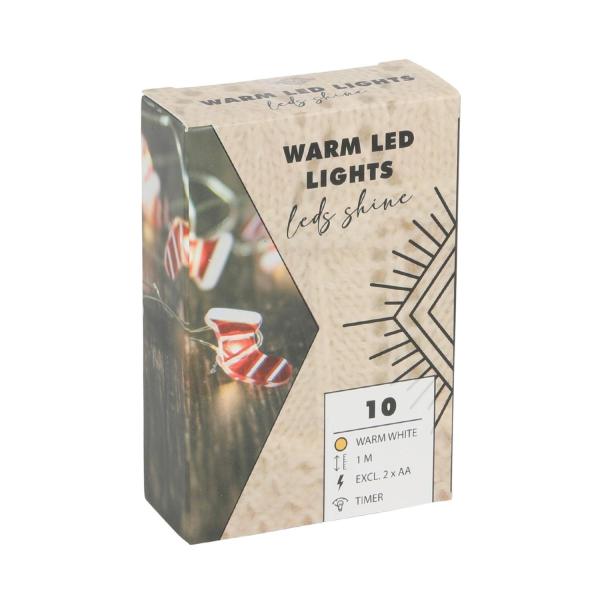 | Lieferumfang: | 1 batteriebetriebene LED-Lichterkette mit Weihnachtsstrumpfmotiven. Die benötigten Batterien sind nicht enthalten |
