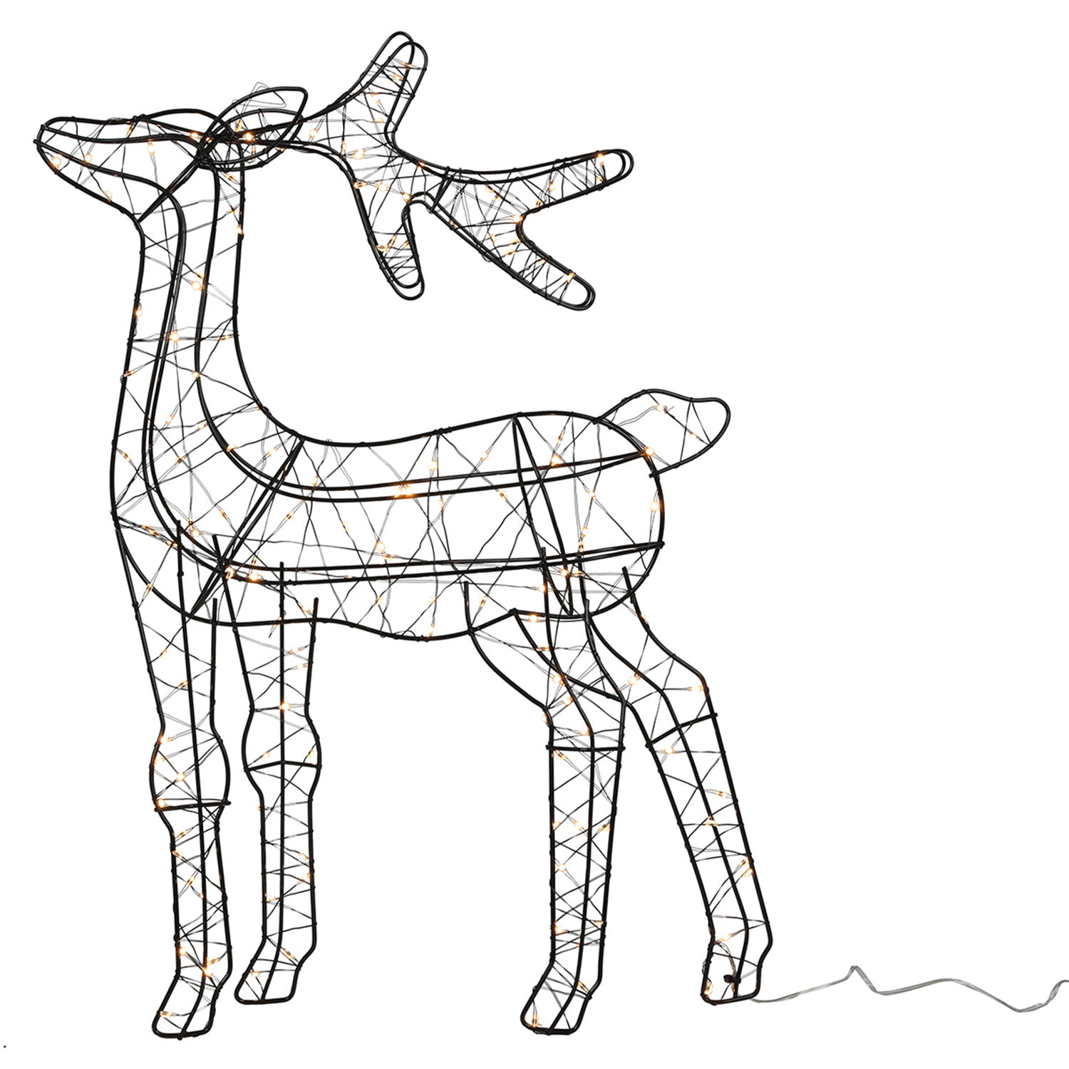 | Lieferumfang: | 1 batteriebetriebenes LED-Rentier mit 150 LEDs. Die benötigten Batterien sind nicht enthalten |