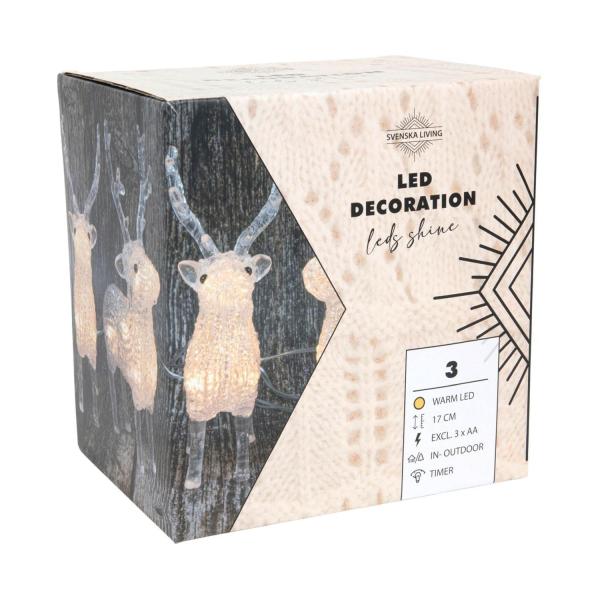 | Lieferumfang: | 3 batteriebetriebene LED-Rentiere mit integrierten Leuchtmitteln. Die benötigten Batterien sind nicht enthalten |