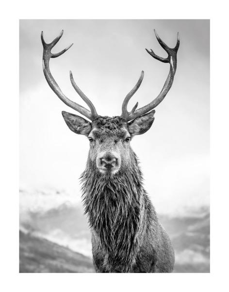 Schwarz - Weiß - 46 x 61 cm - Hirschmotiv