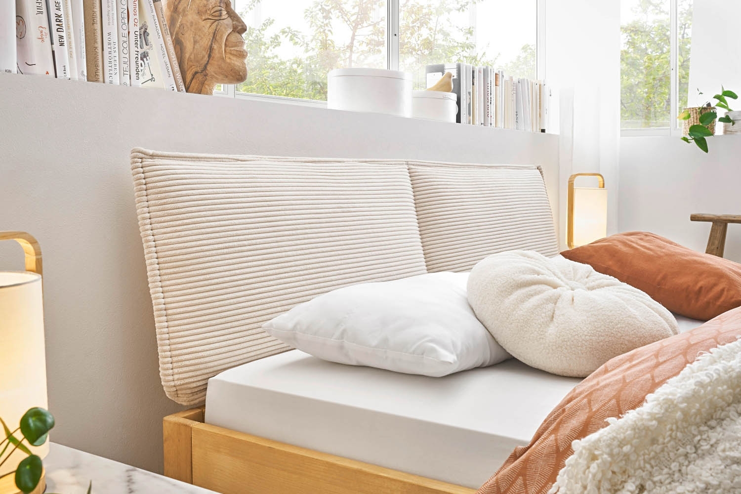 - Polsterkopfteil mit Cordbezug in creme