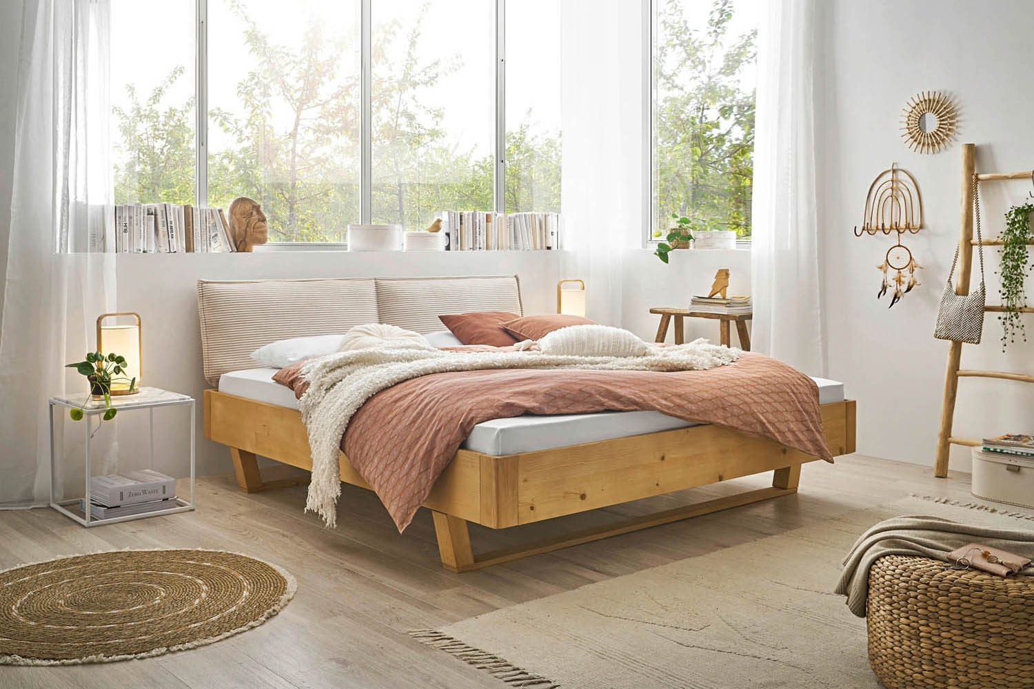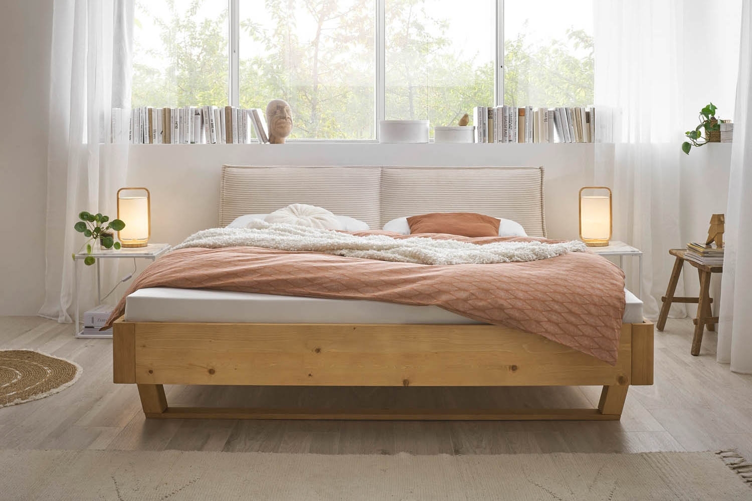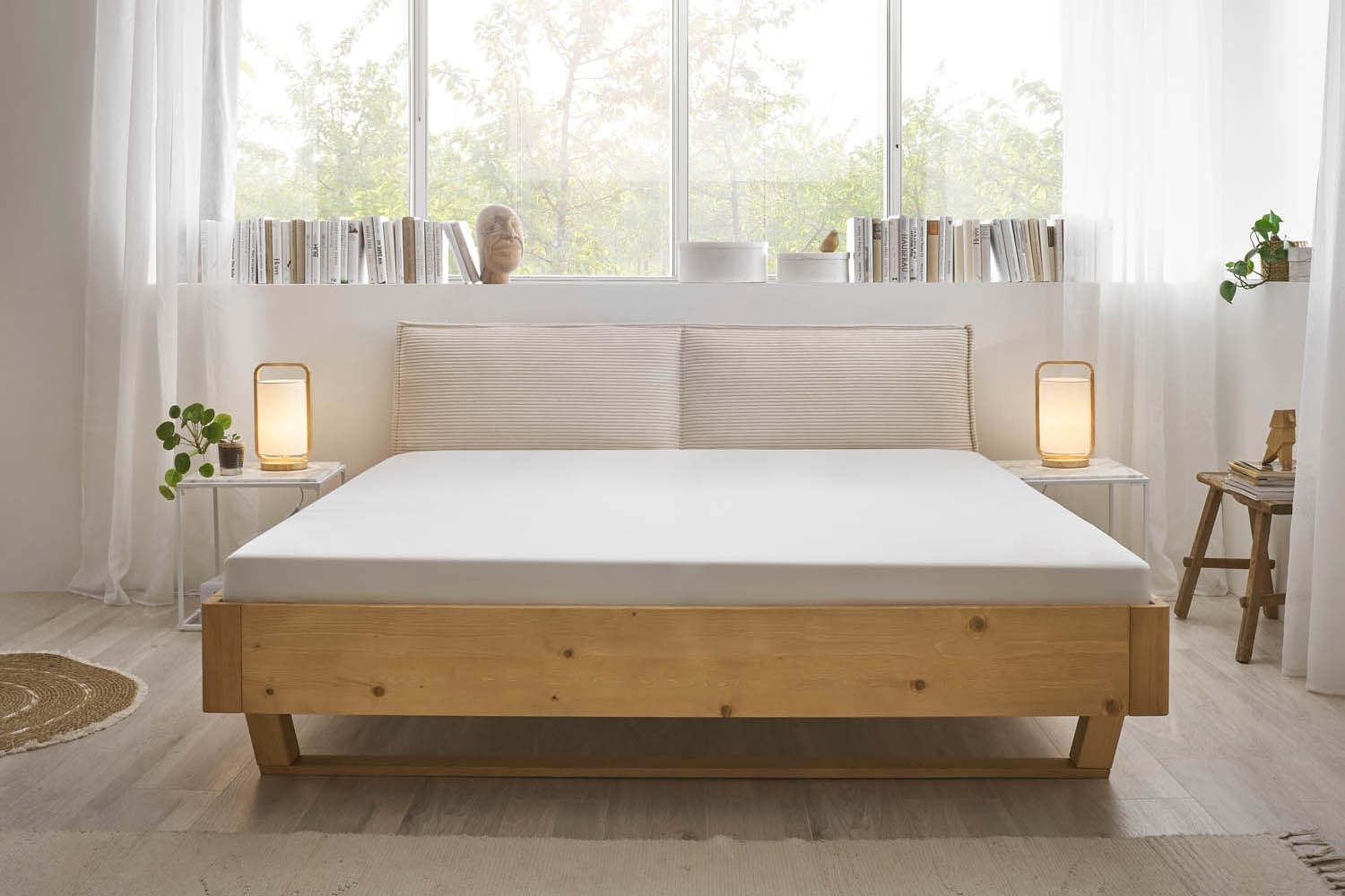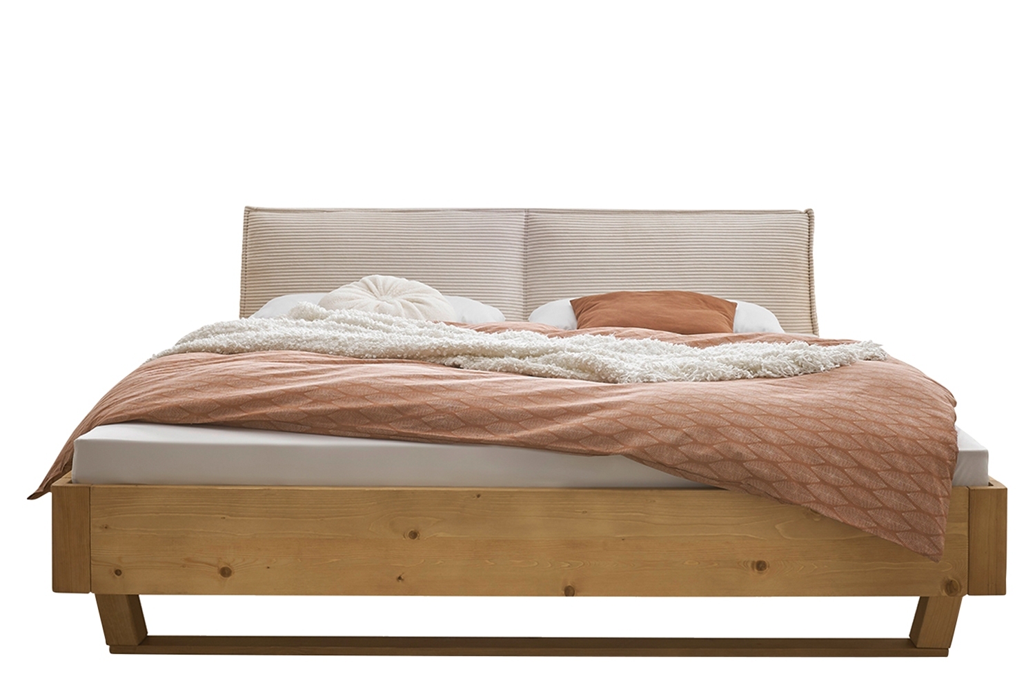180 x 200 cm - Creme - Fichtenholz massiv geölt - Cord