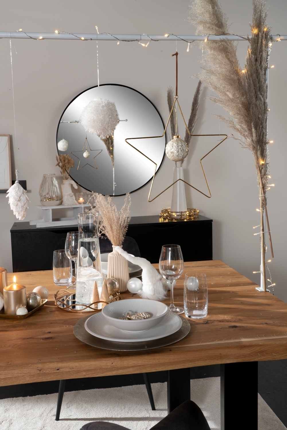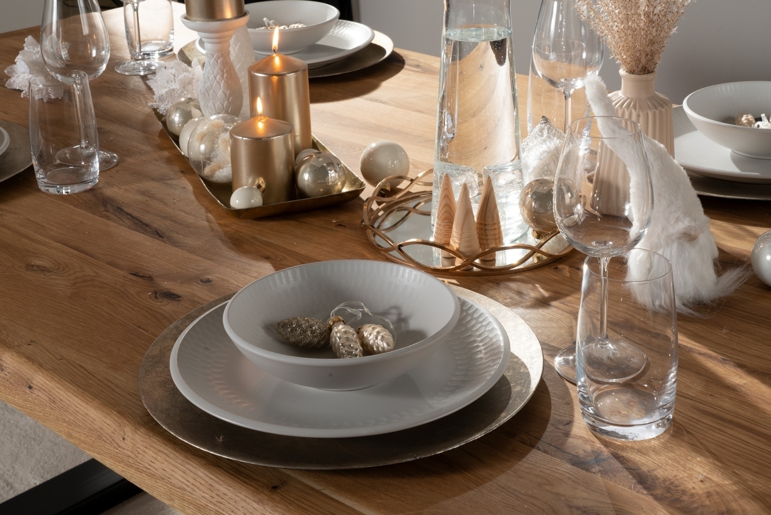 Der Esstisch MODENA von LIV'IN ist ein elegantes Möbelstück, das für gesellige Mahlzeiten und Zusammenkünfte konzipiert ist. Er verfügt über eine großzügige Tischplatte aus massiver Eiche, die geölt wurde, um ihre natürliche Schönheit zu betonen. Mit Abmessungen von 180 cm in der Breite und 100 cm in der Tiefe bietet dieser Tisch ausreichend Platz für mehrere Personen.