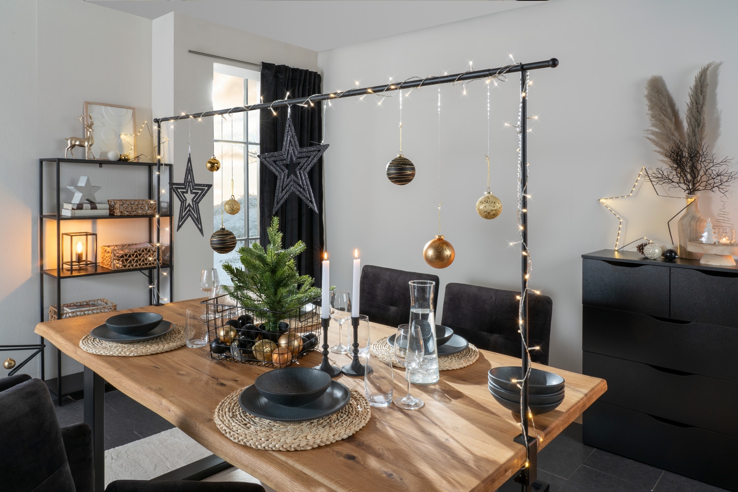 Das U-Gestell des Tisches ist aus Metall gefertigt, was ihm Stabilität und Standfestigkeit verleiht. Die Kombination aus dem warmen Braunton der Eichenplatte und dem modernen Schwarz des Metallgestells verleiht dem Esstisch "MODENA" ein zeitloses und ansprechendes Aussehen, das sich gut in verschiedene Einrichtungsstile einfügt.