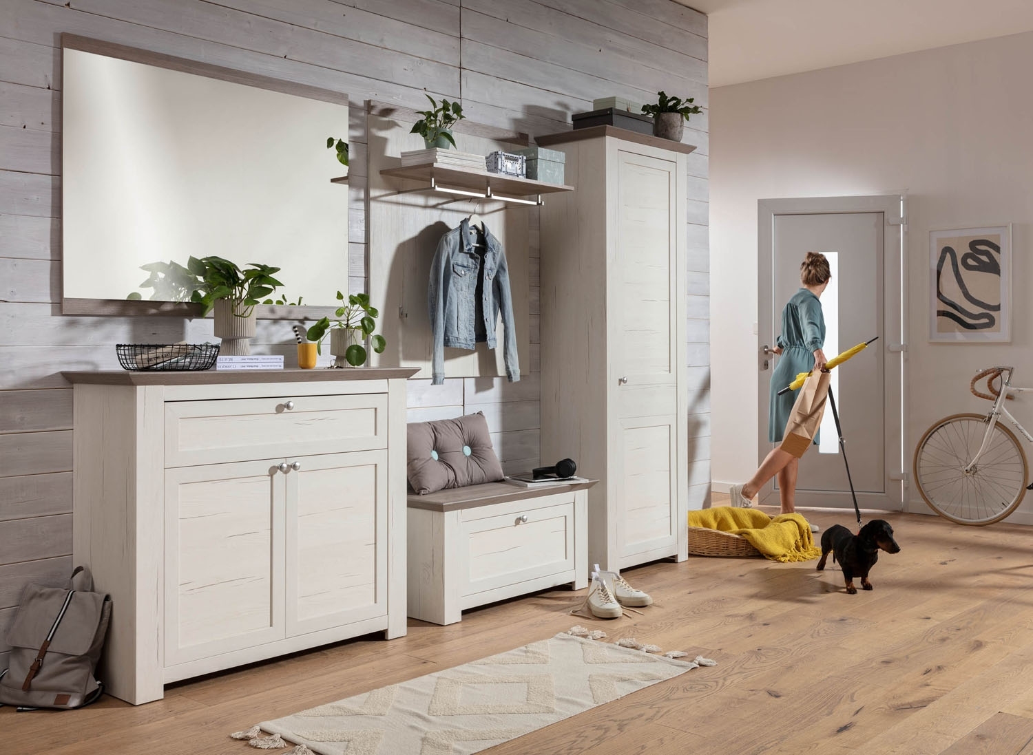 | Lieferumfang: | 1 Garderobenpaneel mit 1 Hutablage, 1 Kleiderstange und 3 Kleiderhaken |