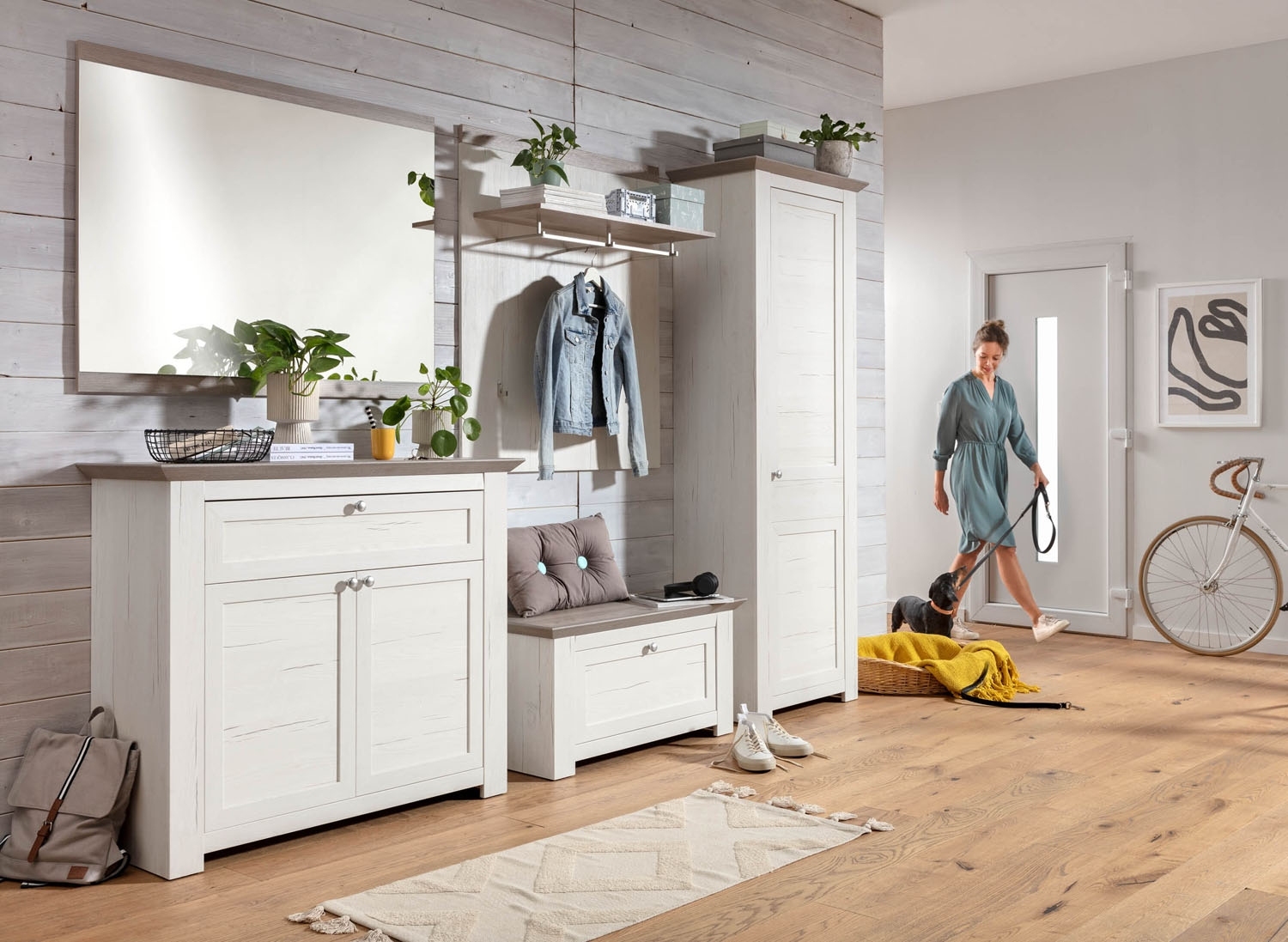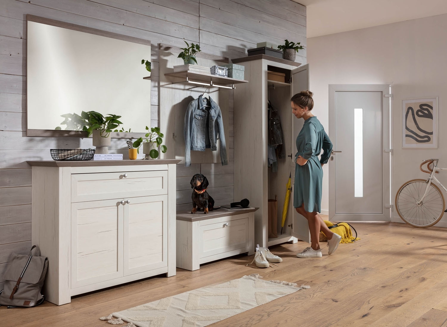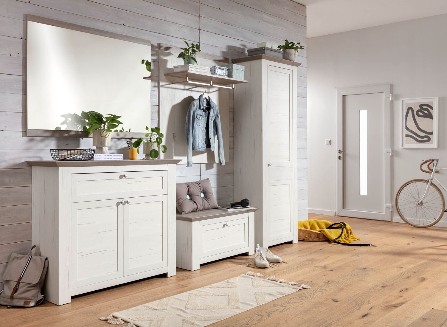 - Garderobenschrank in Pinie weiß Dekor