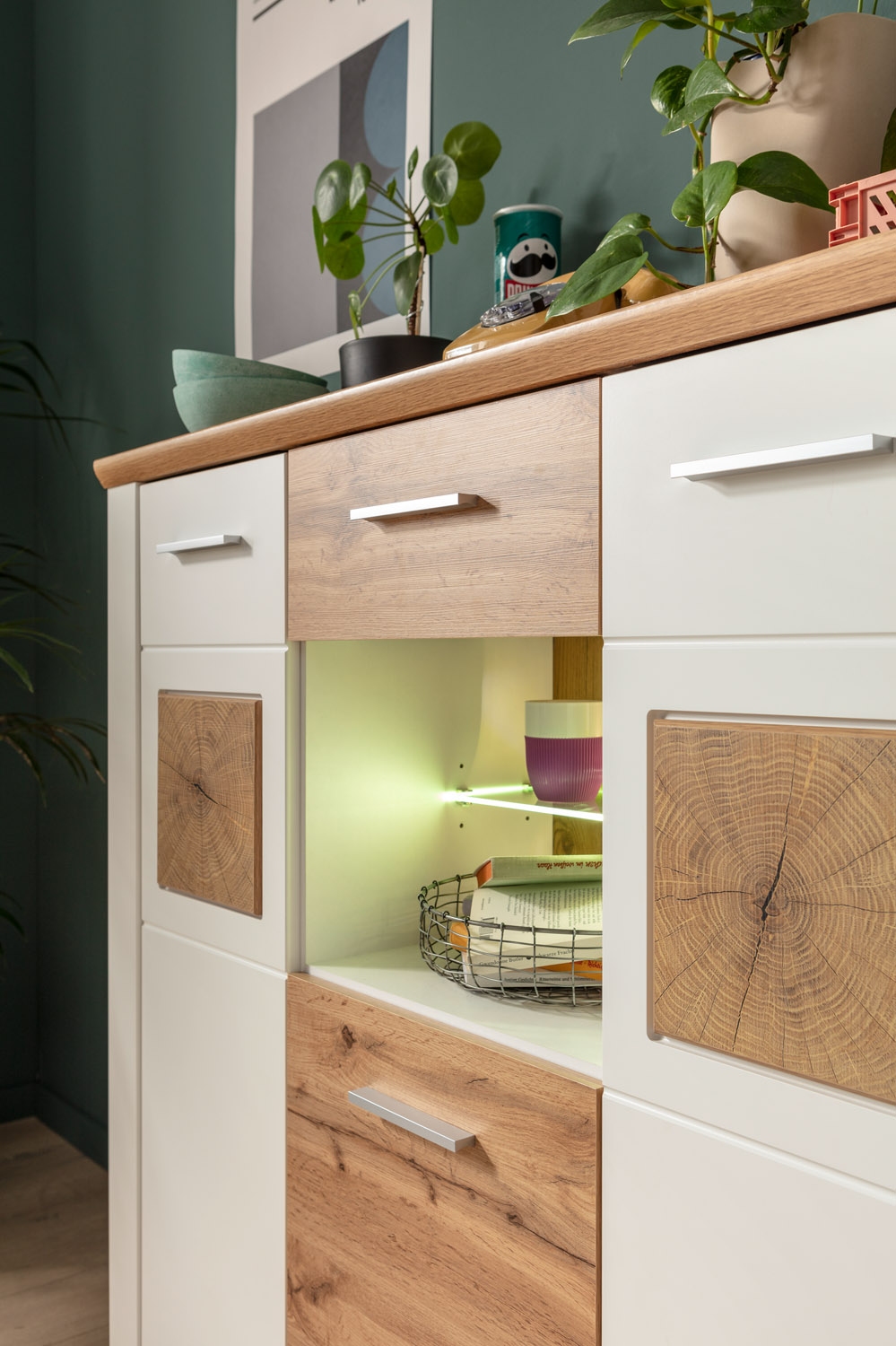 - Highboard in Weiß supermatt Dekor