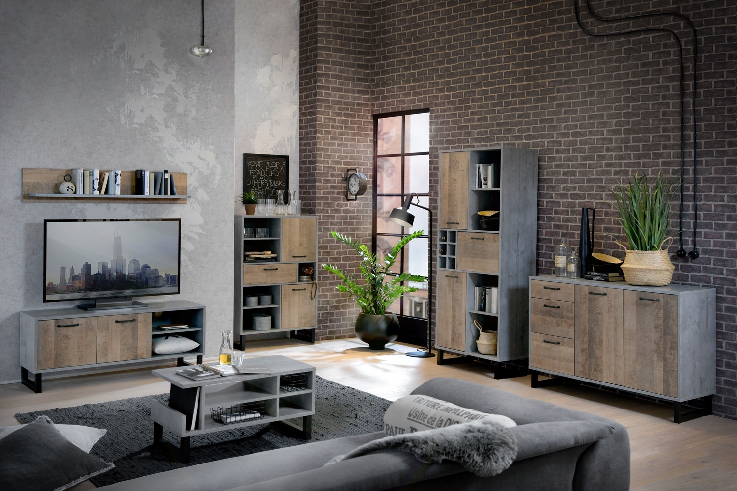 Betondekor - Eiche rustikal Dekor - B 82 cm - 3 Türen