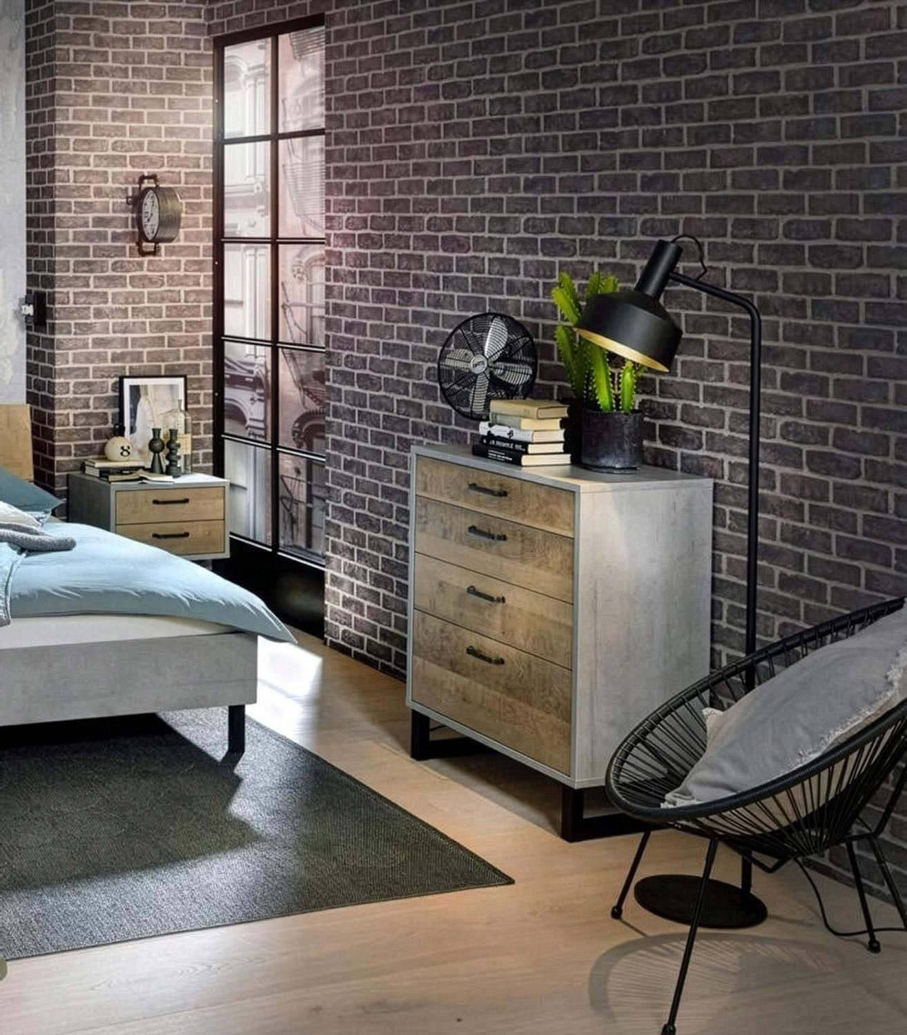 Betondekor - Eiche rustikal Dekor - B 80 cm - 4 Schubladen