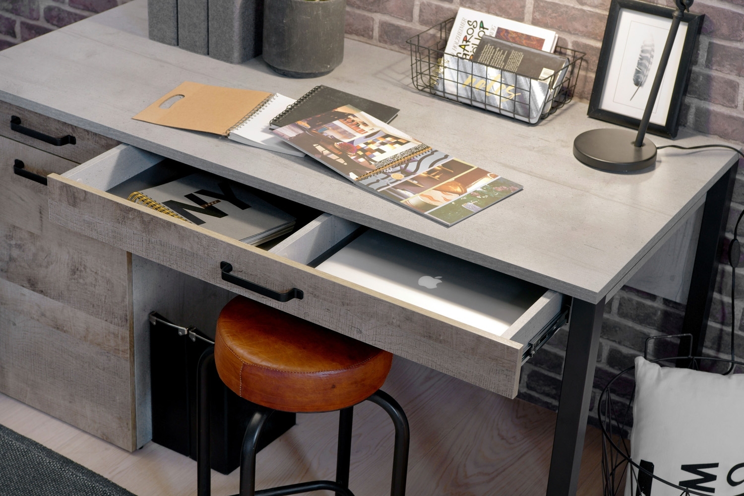 | Lieferumfang: | 1 Schreibtisch mit 1 Tür, dahinter 1 Einlegeboden. 2 Schubladen |
