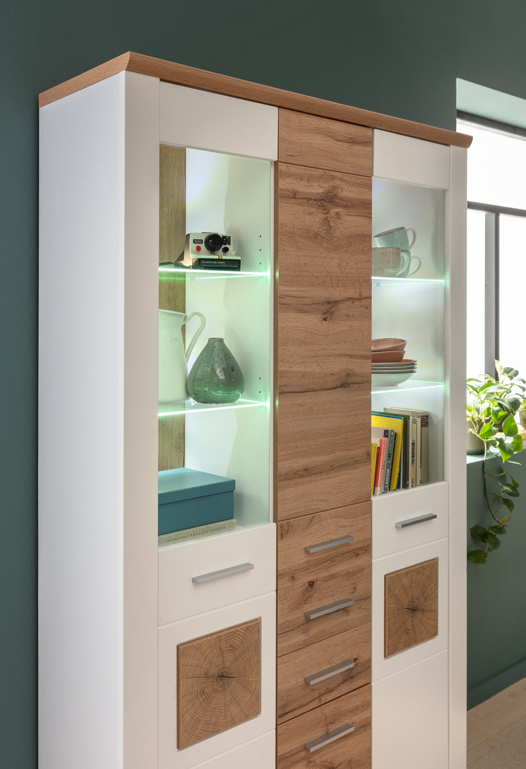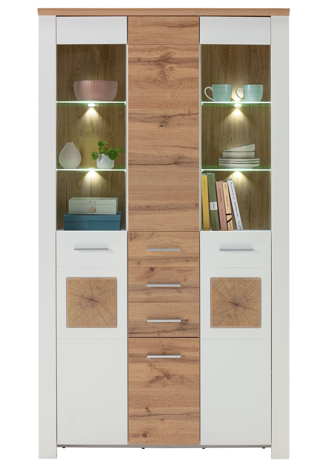- mit 2 Türen, 2 Glastüren und 2 Schubladen