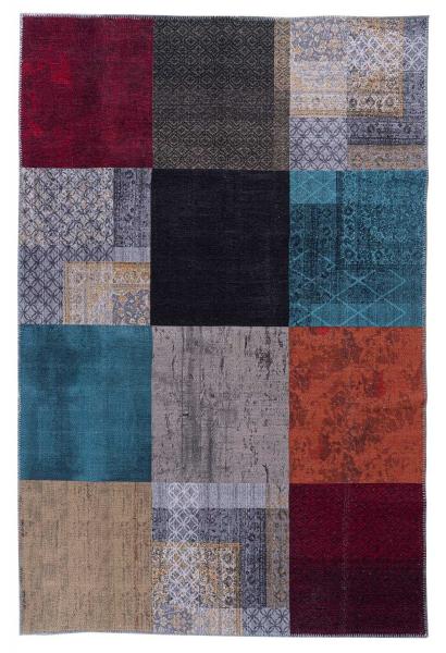 Rot - Blau - Grau - 120 x 170 cm - mit Patchworkmuster