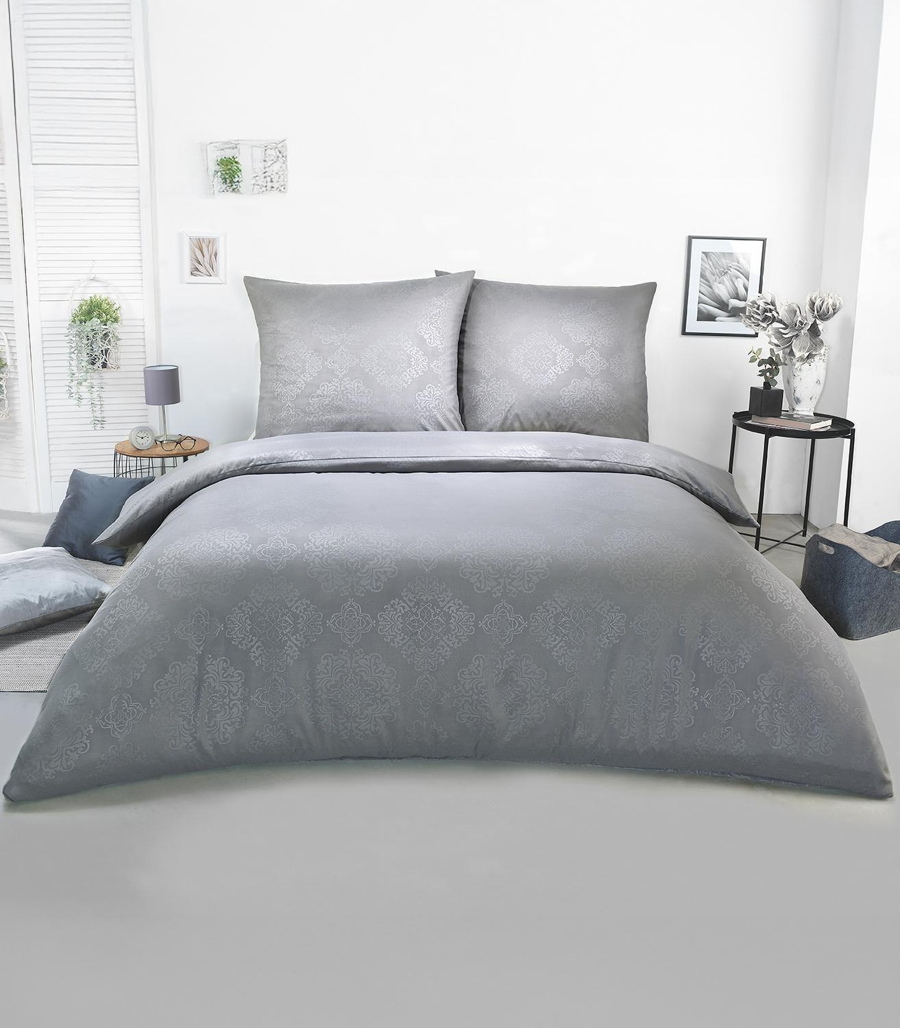 Die Mikrofaser-Bettwäsche ORNAMENT in Grau überzeugt mit ihrem edlen Prägedruck und einem eleganten Ornamentmuster. Der Bettbezug misst 200 x 200 cm, die zwei Kissenbezüge jeweils 80 x 80 cm. Dank Reißverschluss gelingt das Beziehen im Handumdrehen. Die pflegeleichte Bettwäsche aus 100 % Polyester ist bis 60 °C waschbar und trocknergeeignet – ideal für den Alltag.