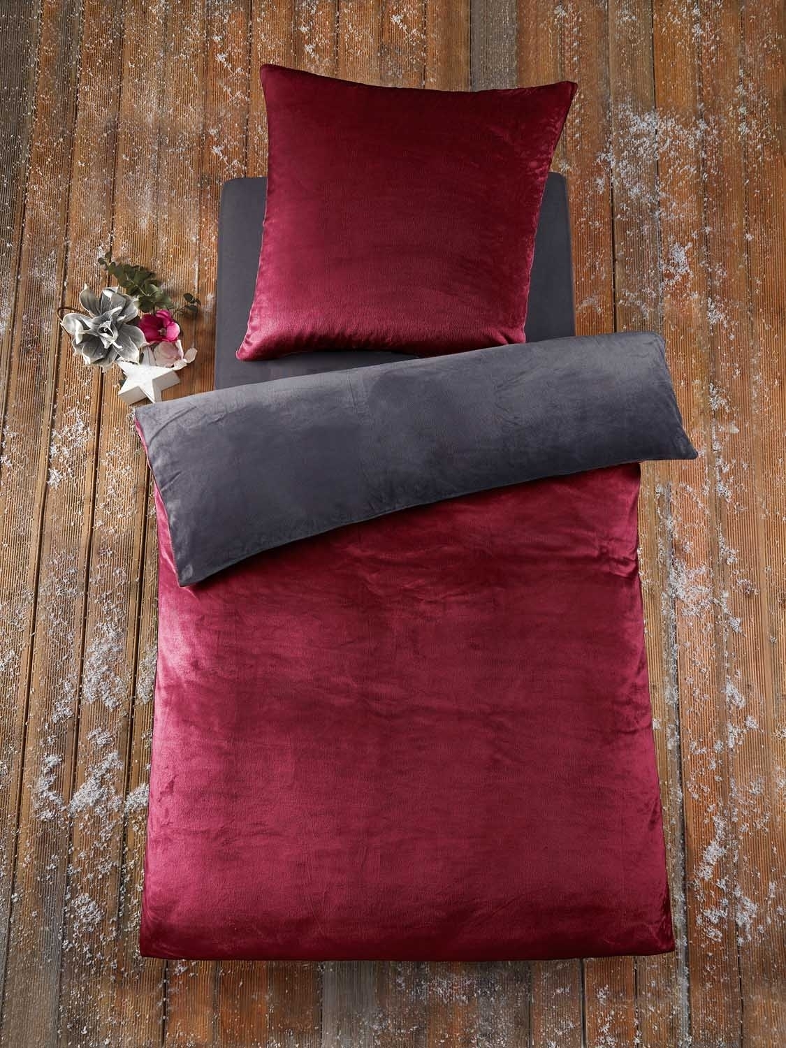 - Mikrofaser-Wendebettwäsche in anthrazit und bordeaux