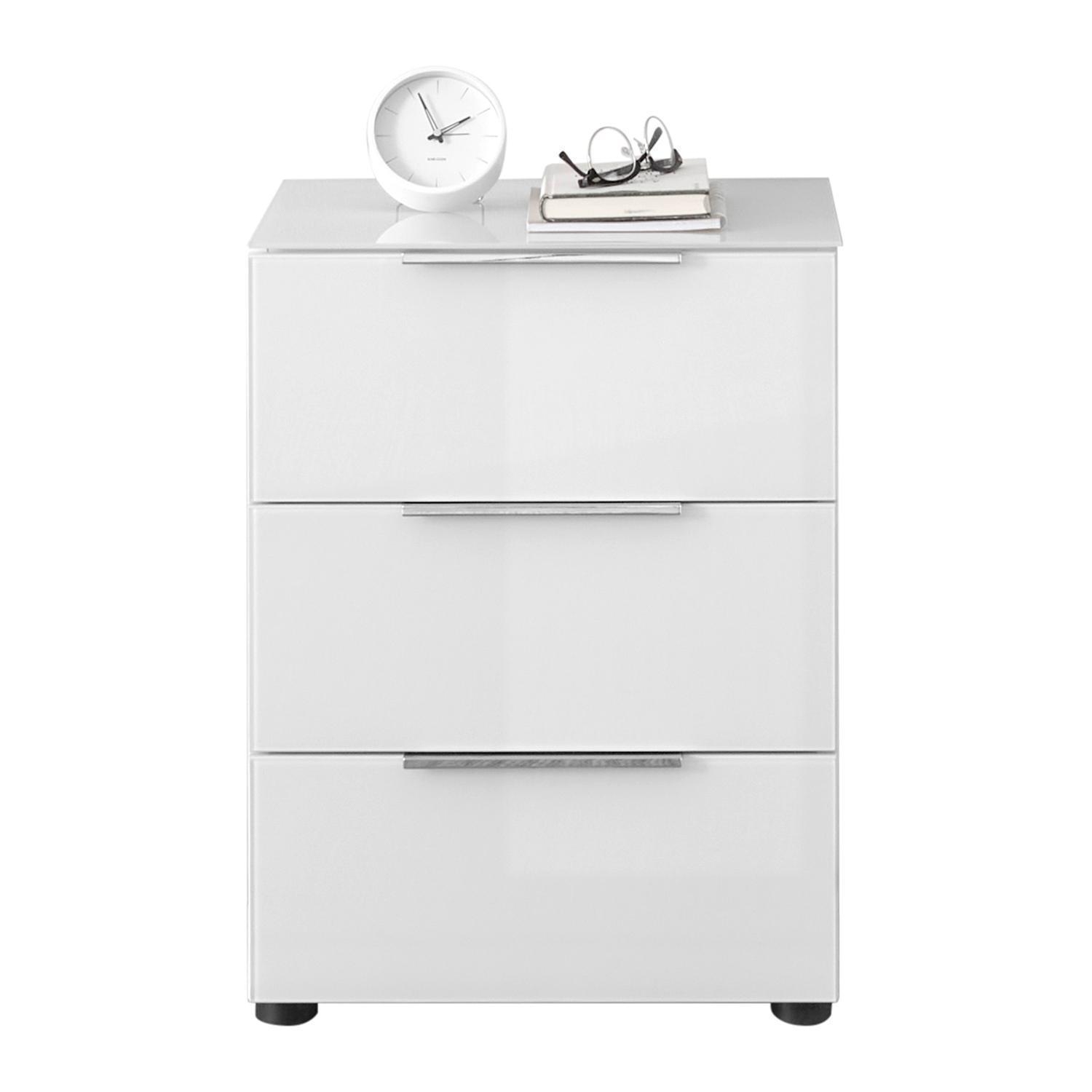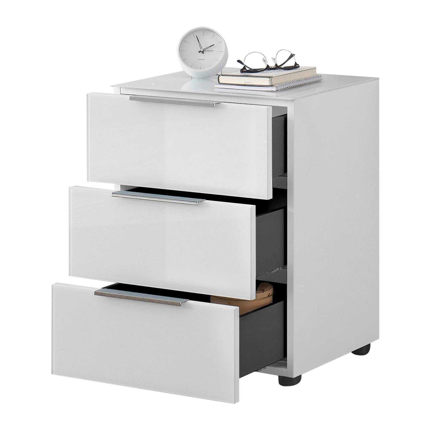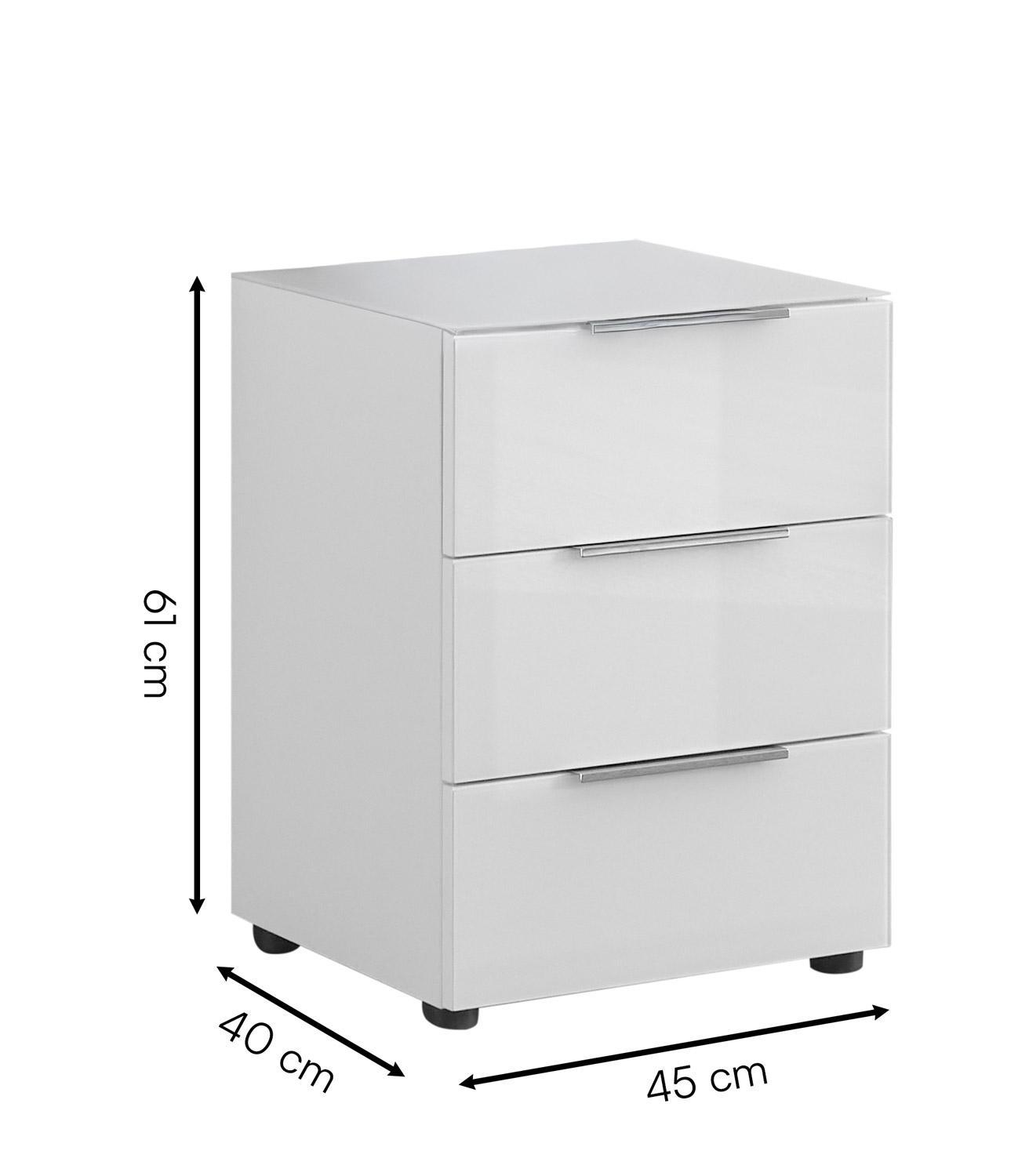 B 45 cm - 3 Schubladen - Weißglas - Weiß matt