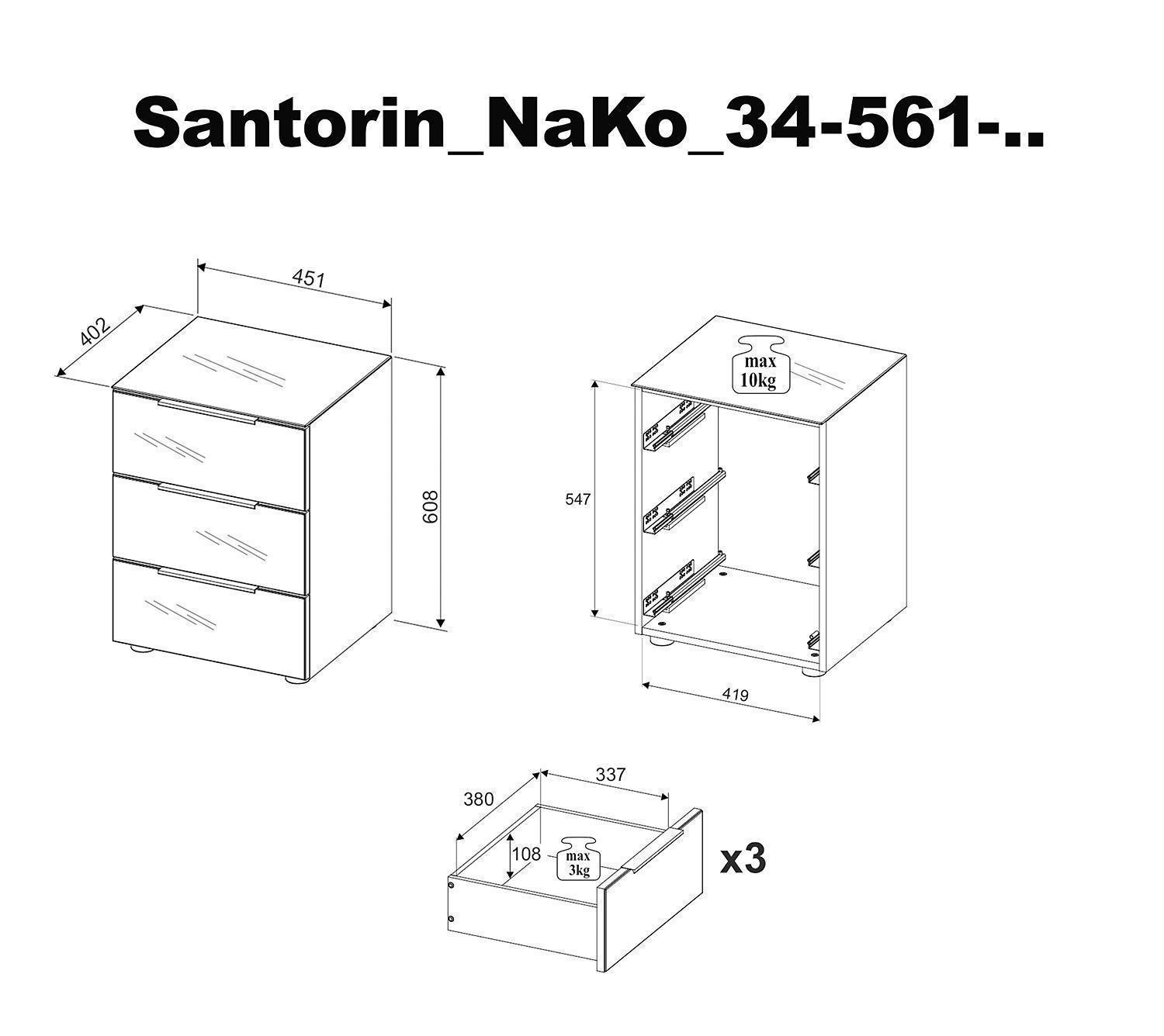 | Lieferumfang: | 1 Nachttisch mit 3 Schubladen |