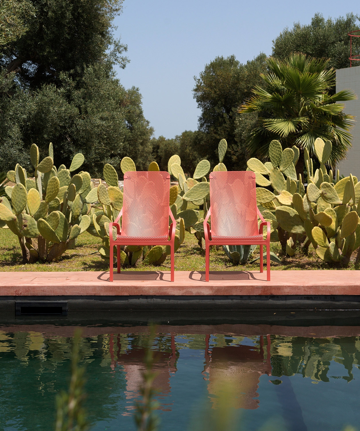 | Lieferumfang: | 1 stapelbarer Gartensessel mit Halteklammern für Handtücher |
