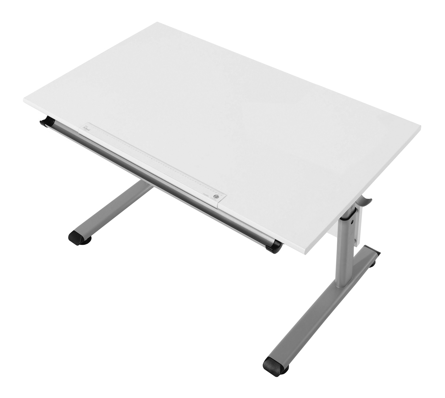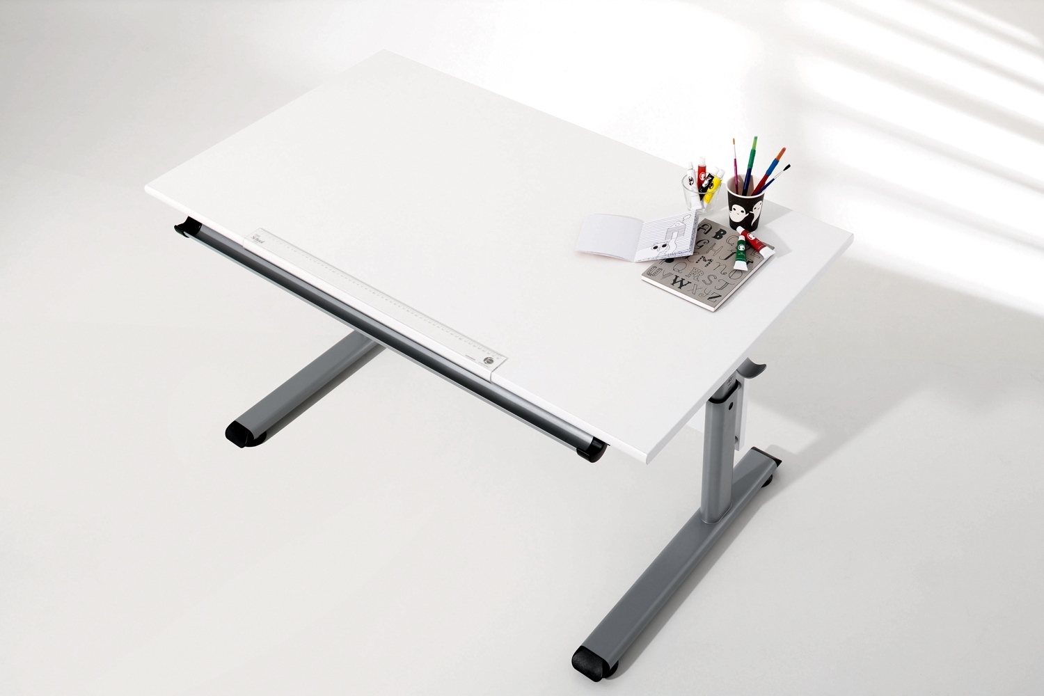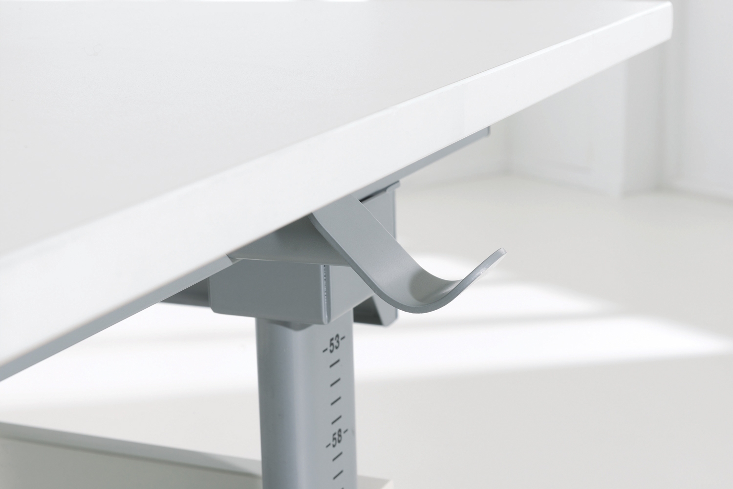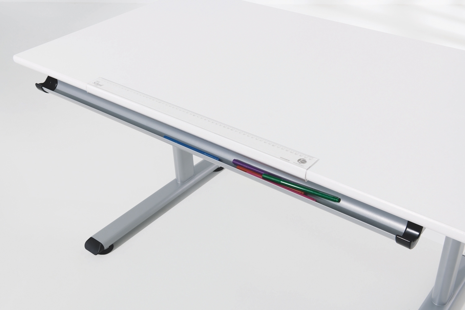 - Die Tischplatte lässt sich durch einen Rastbeschlag in der Neigung bis 19° schräg stellen.