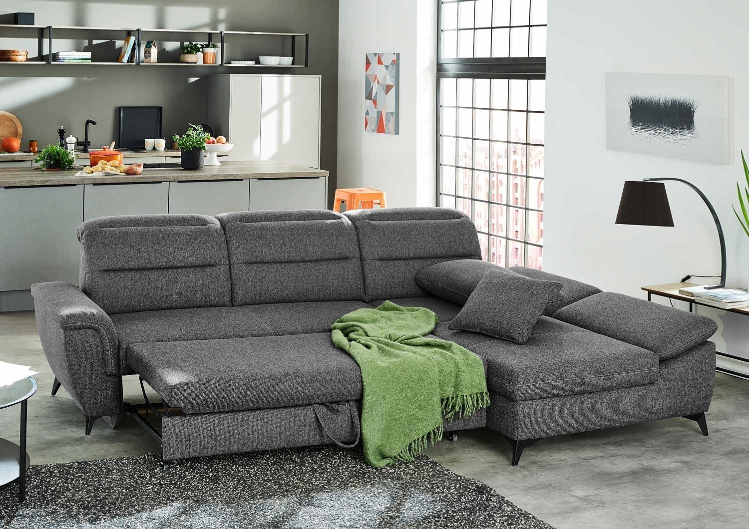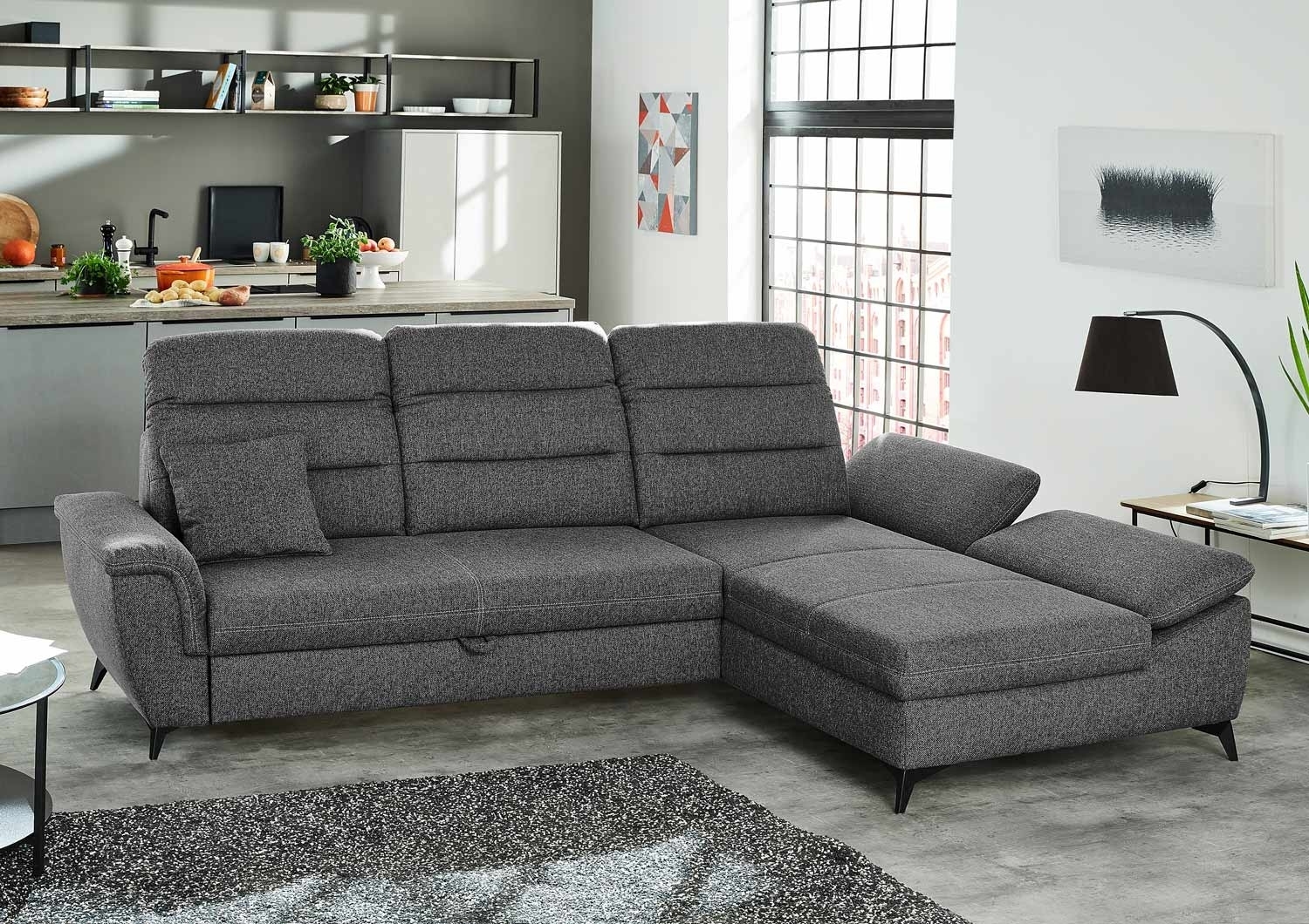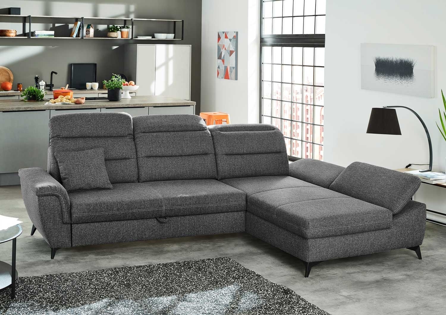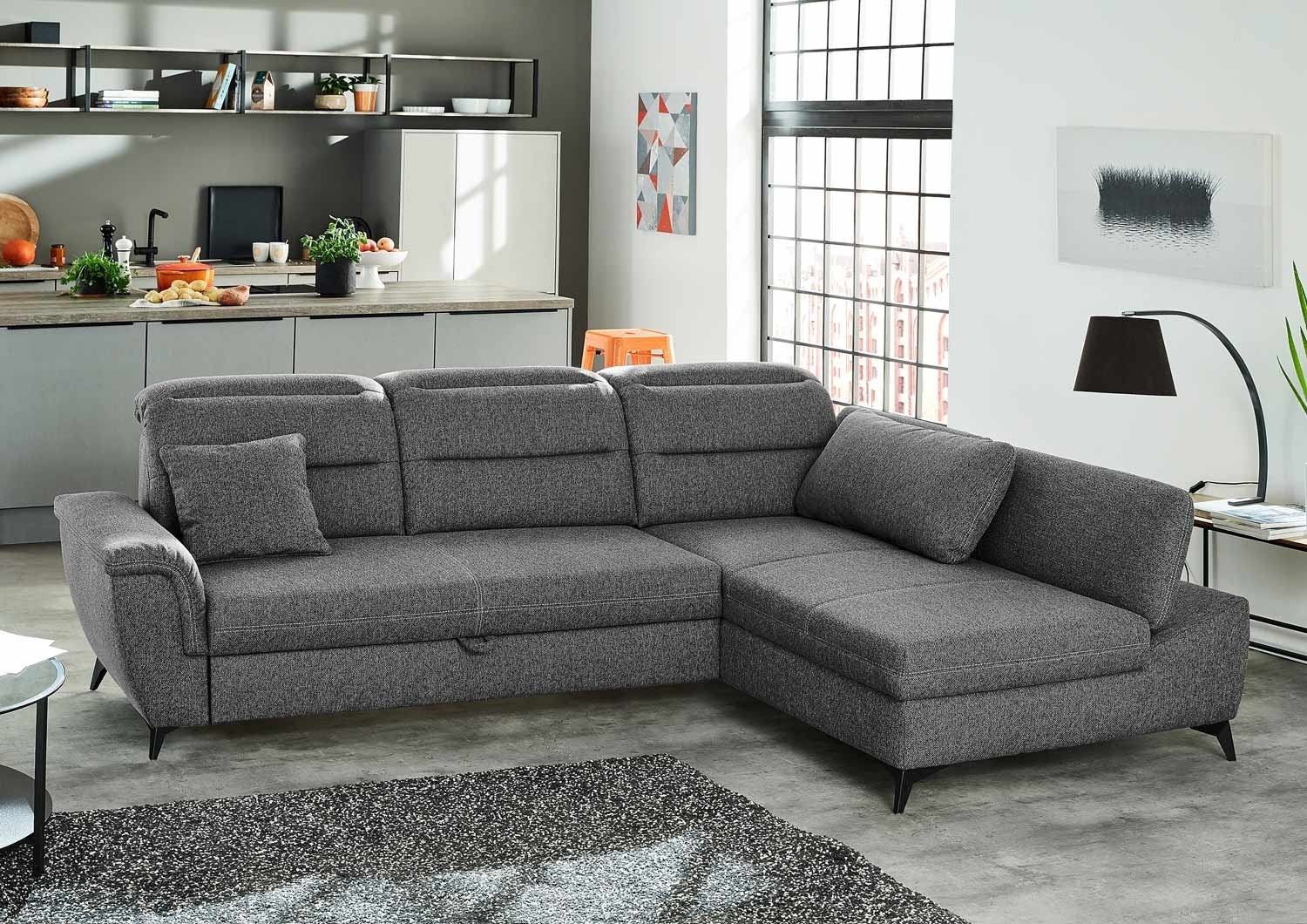 | Lieferumfang: | 1 ausziehbares Ecksofa mit beidseitig montierbarer Ottomane, mit 1 Armkissen und 1 Zierkissen |