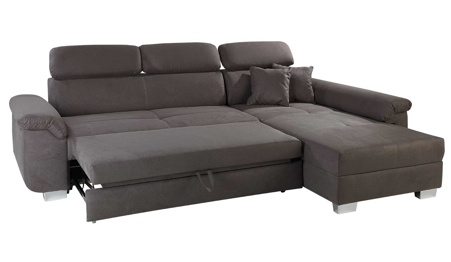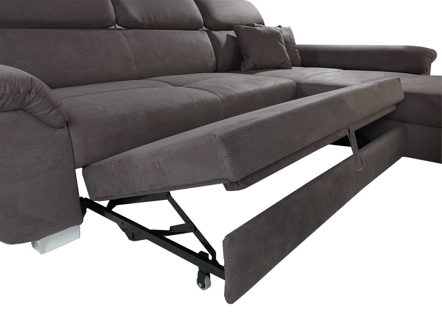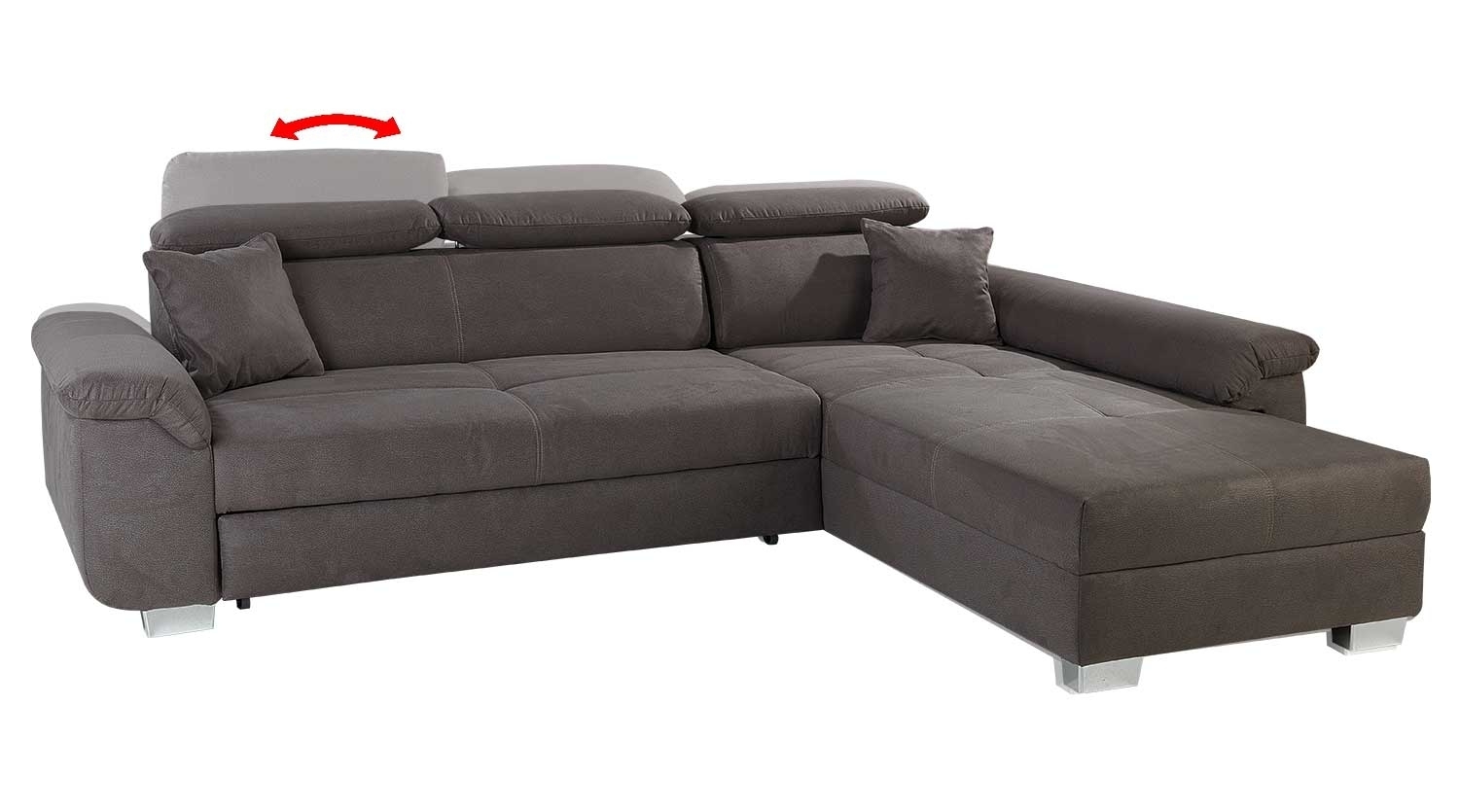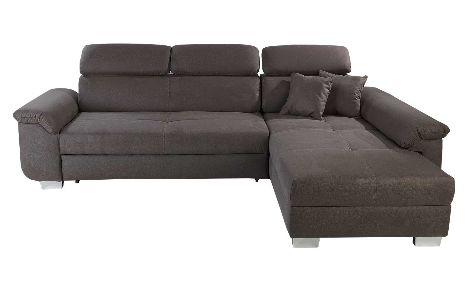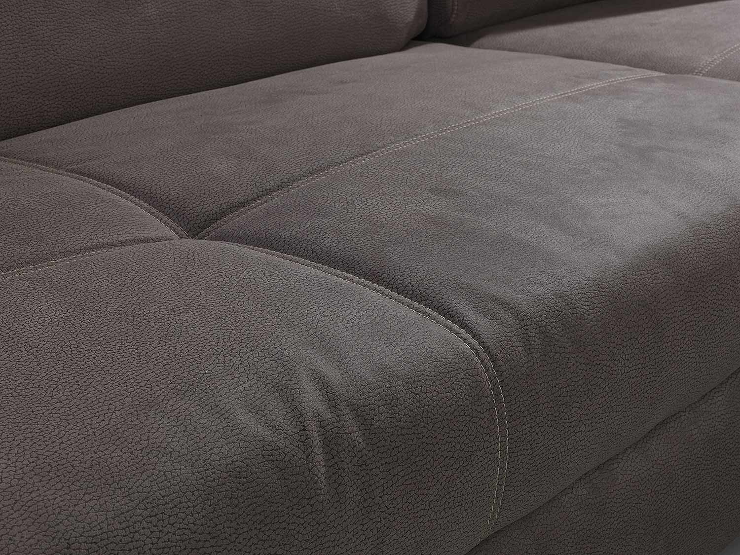 Lieferumfang: 1 Polstergarnitur mit 2 Zierkissen, beidseitig montierbarer Ottomane, Gästebettfunktion, verstellbaren Kopfteilen