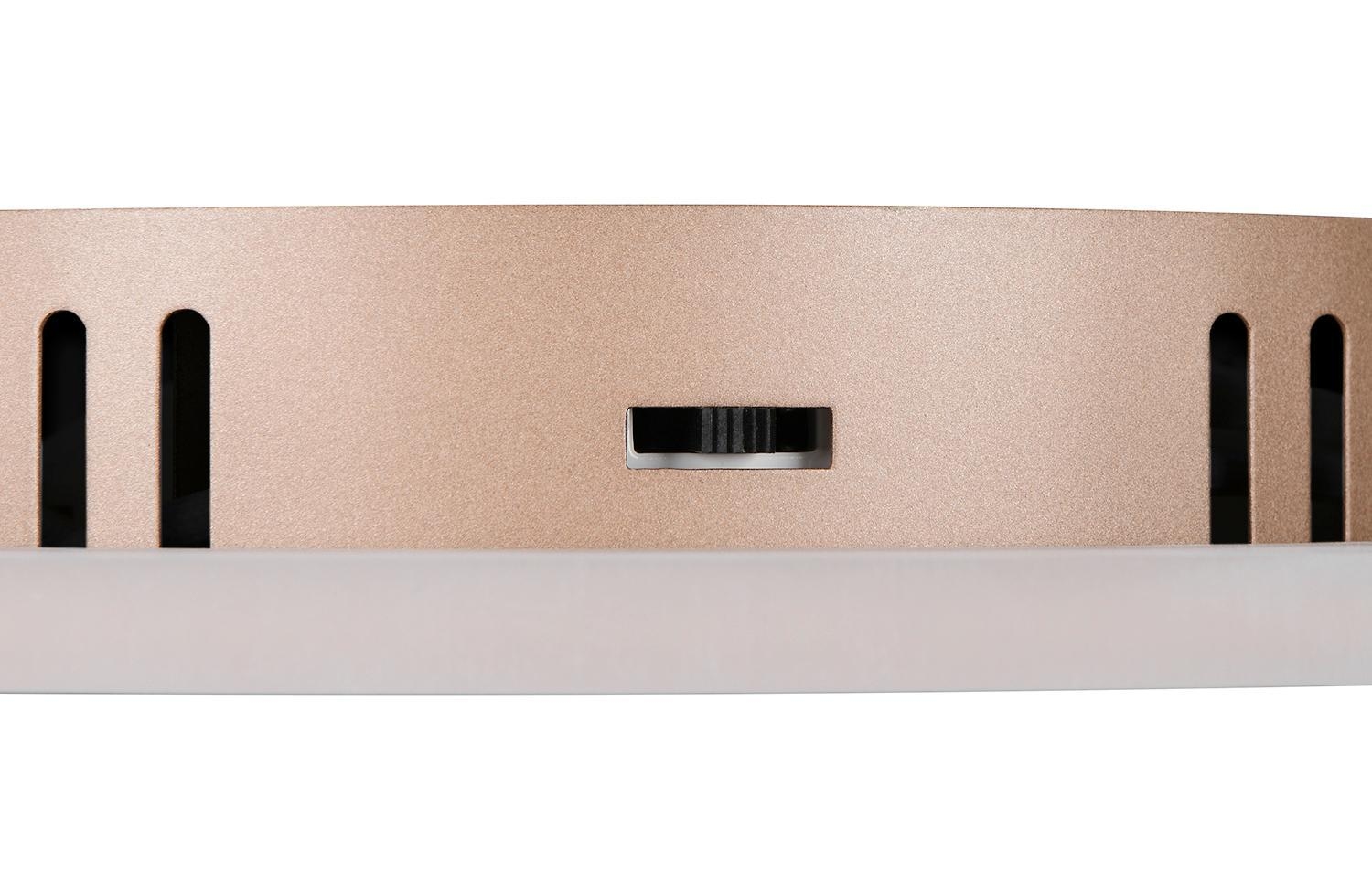 Die LED-Deckenleuchte CALLE der Marke Reality Leuchten besteht aus Metall und ist in Braun und Weiß gehalten. Sie verfügt über ein fest integriertes LED-Leuchtmittel, das im Lieferumfang enthalten und nicht austauschbar ist. Die Leuchte bietet eine Anpassung der Farbtemperatur im Bereich von 3000 bis 4000 Kelvin und ist mit einem Switch-Dimmer ausgestattet. Der Durchmesser der Deckenleuchte beträgt 50 cm, die Höhe liegt bei 6,5 cm. Die Leistungsaufnahme beträgt 21 Watt bei einer Lichtstärke von 2400 Lumen.