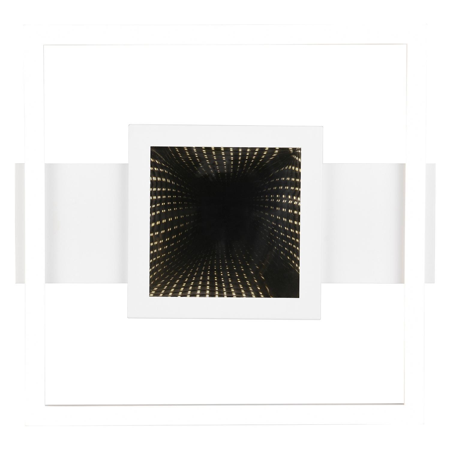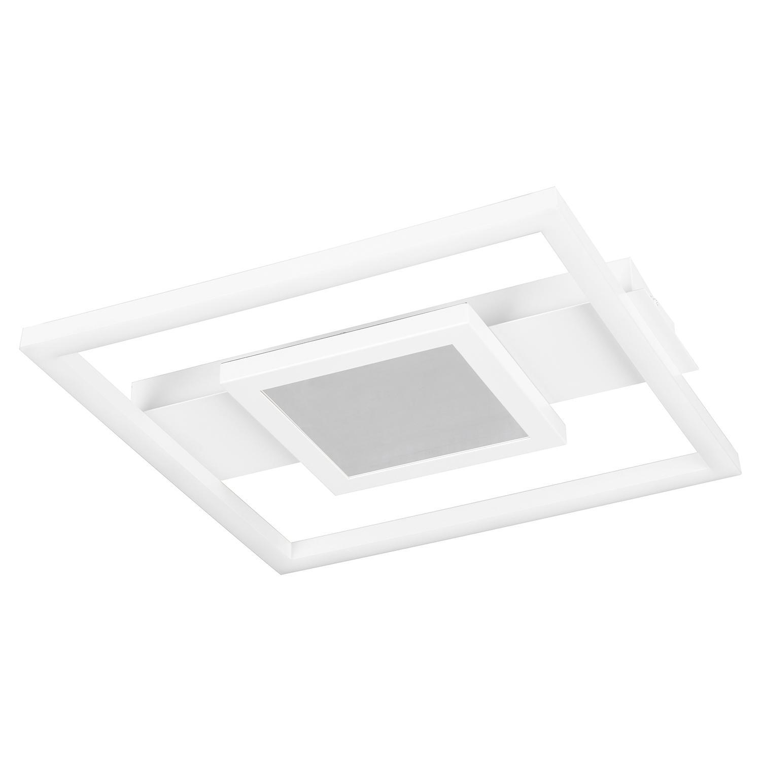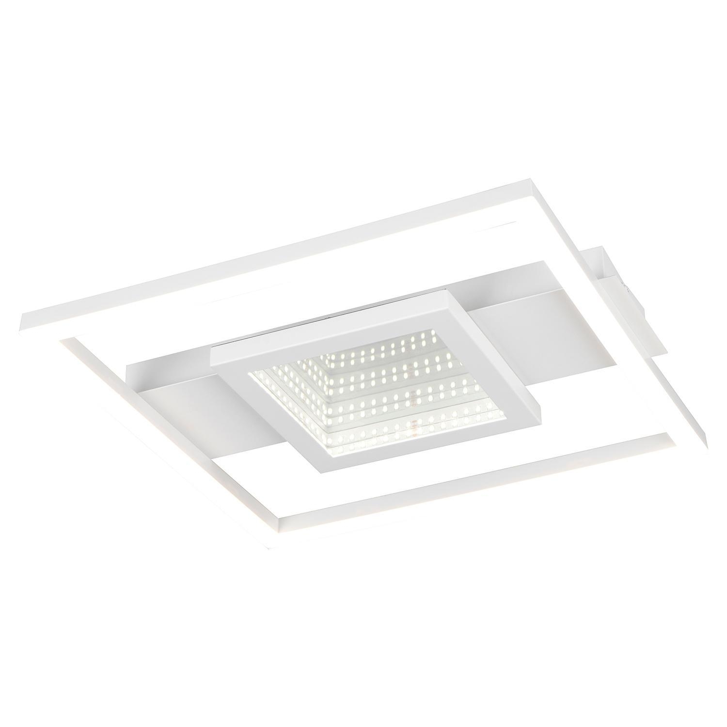 Die LED-Deckenleuchte WHEELER der Marke Reality Leuchten besteht aus weiß lackiertem Metall und ist mit einem eckigen Lampenschirm ausgestattet. Der Schirm verfügt über eine 3D-Spiegeleffektfolie, die dem Design eine besondere optische Tiefe verleiht. Die Leuchte hat eine Breite von 35 cm, eine Höhe von 5 cm und eine Tiefe von 33 cm. Sie ist mit einem fest verbauten LED-Leuchtmittel ausgestattet, das eine Leistung von 16 Watt aufweist. Die Farbtemperatur beträgt 4000 Kelvin, der Lichtstrom liegt bei 2000 Lumen. Das Leuchtmittel ist im Lieferumfang enthalten und nicht austauschbar.