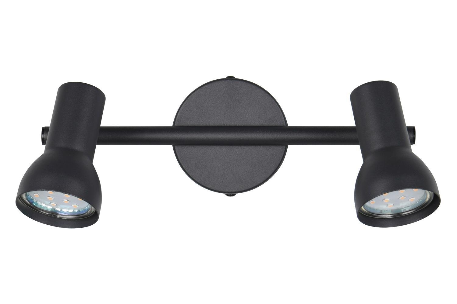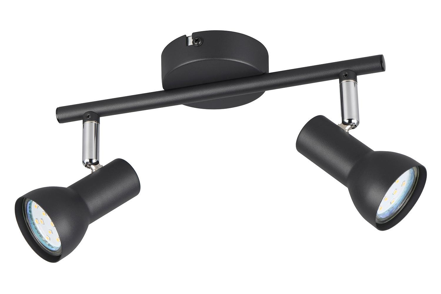Der Strahler CANTAR der Marke Reality Leuchten ist aus Metall in der Farbe Schwarz gehalten. Die zwei verstellbaren Lampenschirme ermöglichen eine flexible Ausrichtung des Lichts. Der Strahler verfügt über eine Breite von 25,5 cm, eine Höhe von 15,5 cm und eine Tiefe von 8 cm. Es sind zwei Leuchtmittel erforderlich, die nicht im Lieferumfang enthalten sind. Die Leuchtmittel sind austauschbar und entsprechen dem Typ GU10. Die maximale Leistung pro Leuchtmittel beträgt bis zu 5 Watt.
