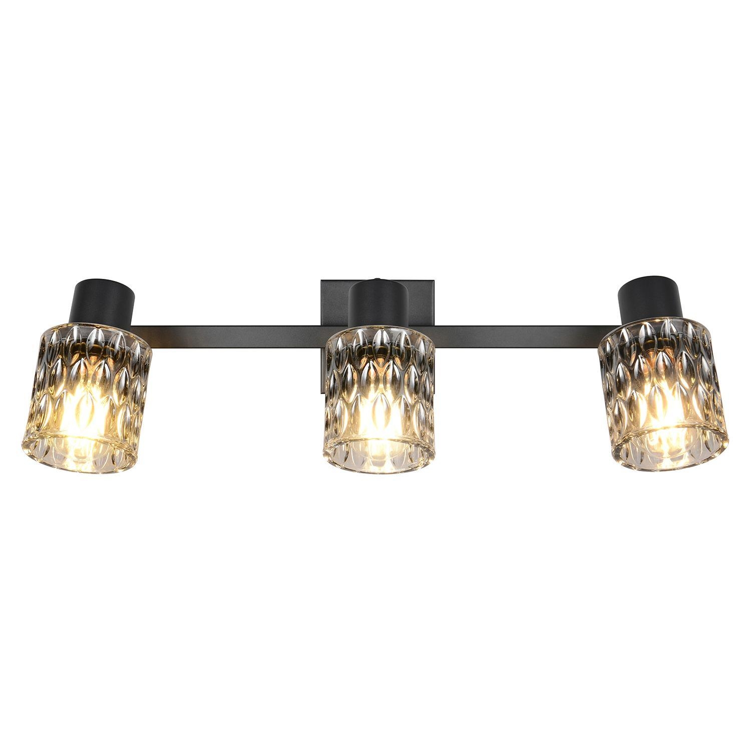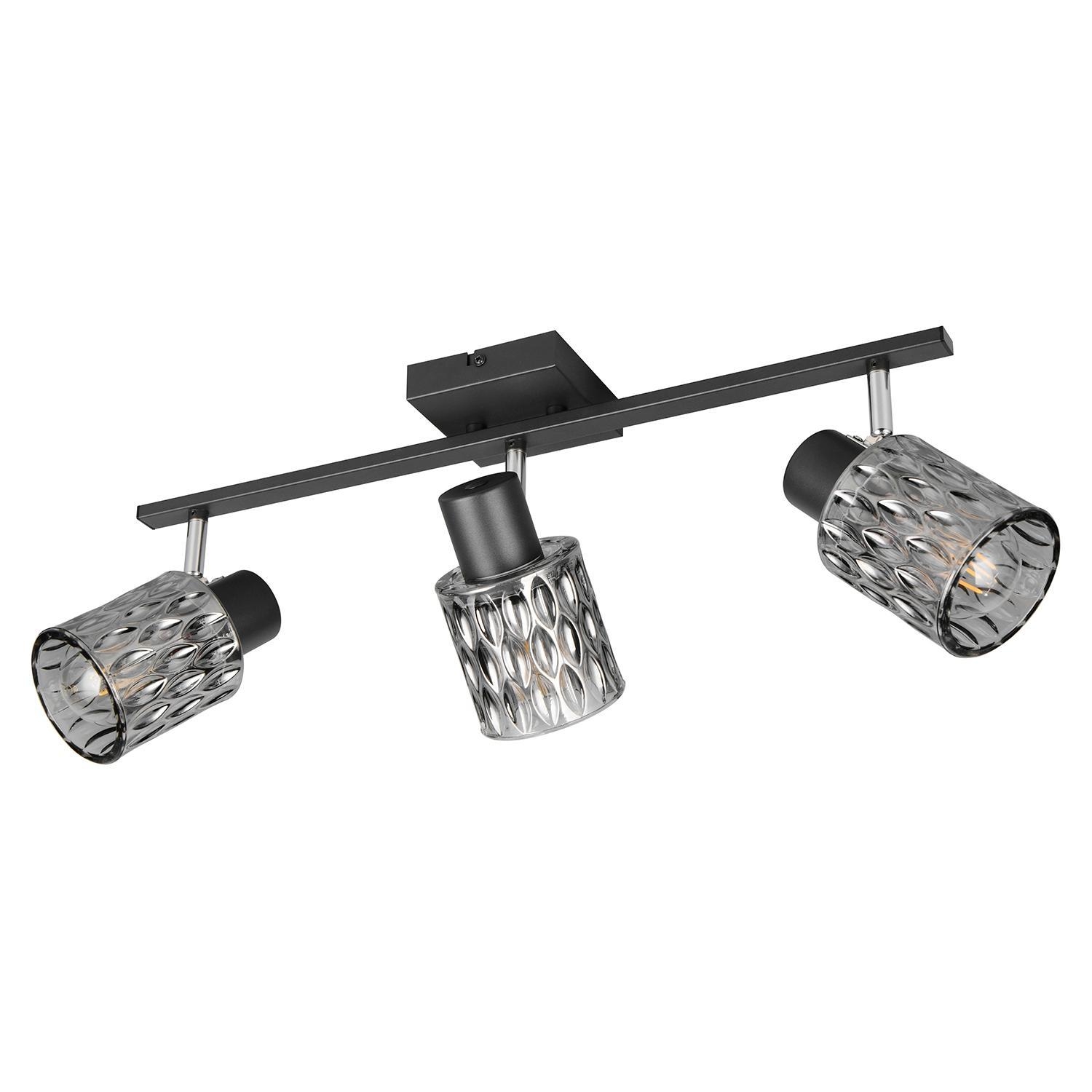55 x 21 cm - 3-flammig - Rauchfarben - Schwarz - Glas - Metall