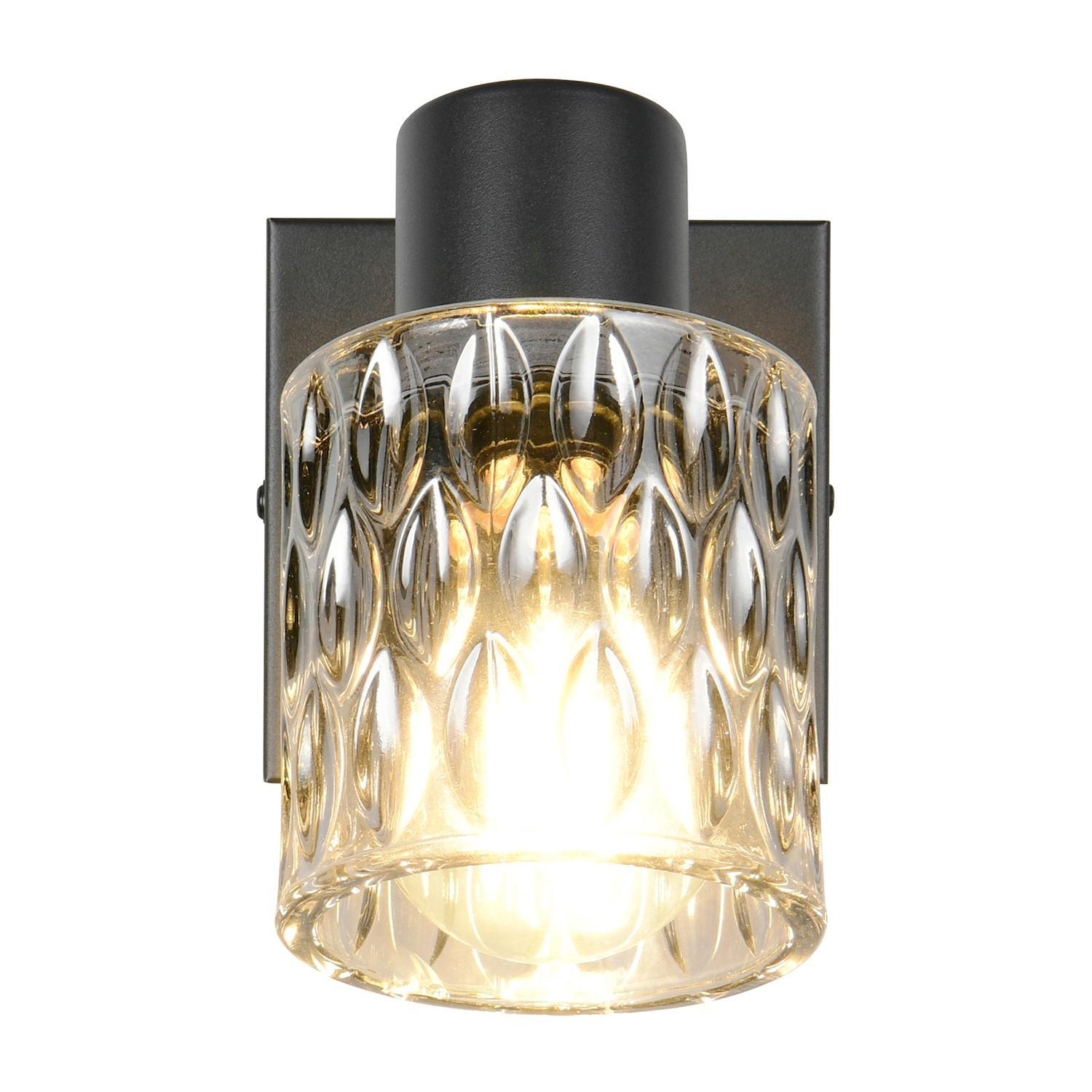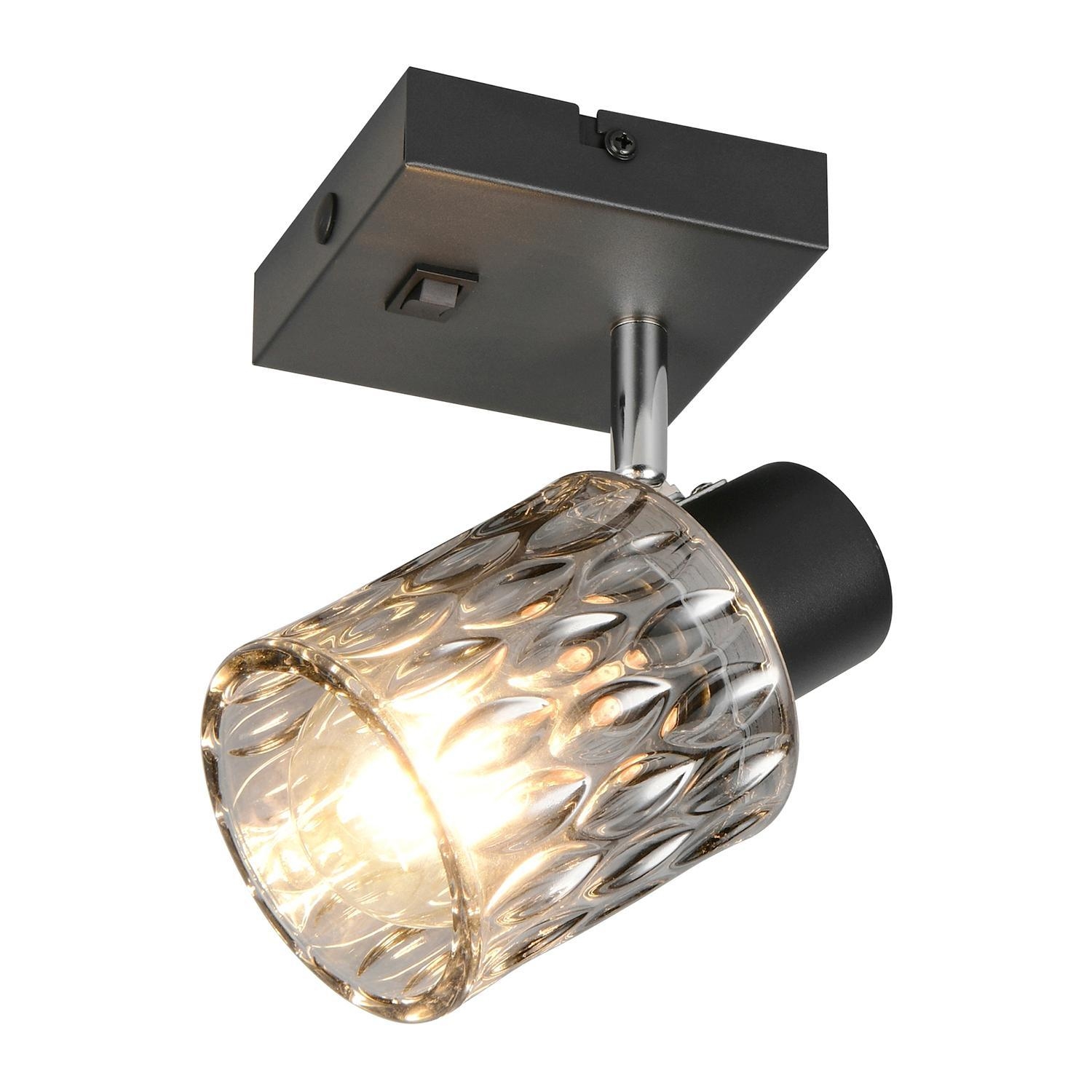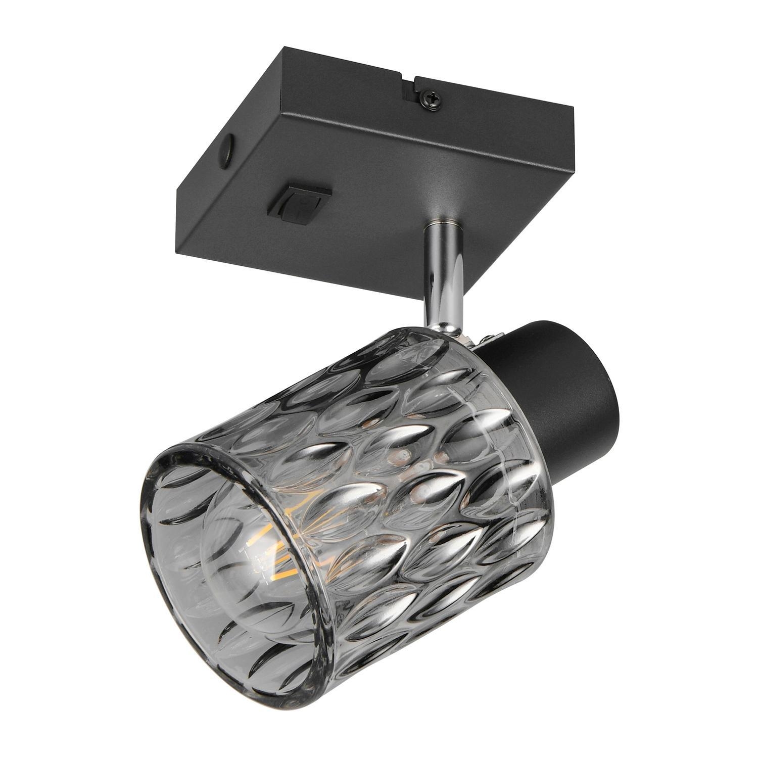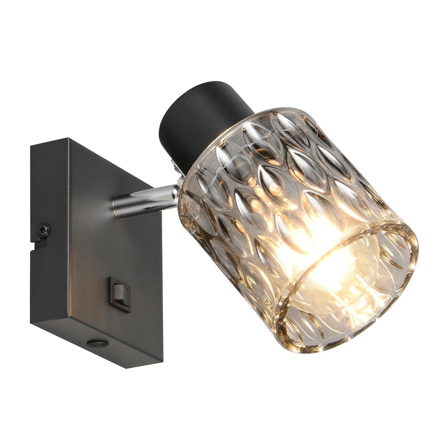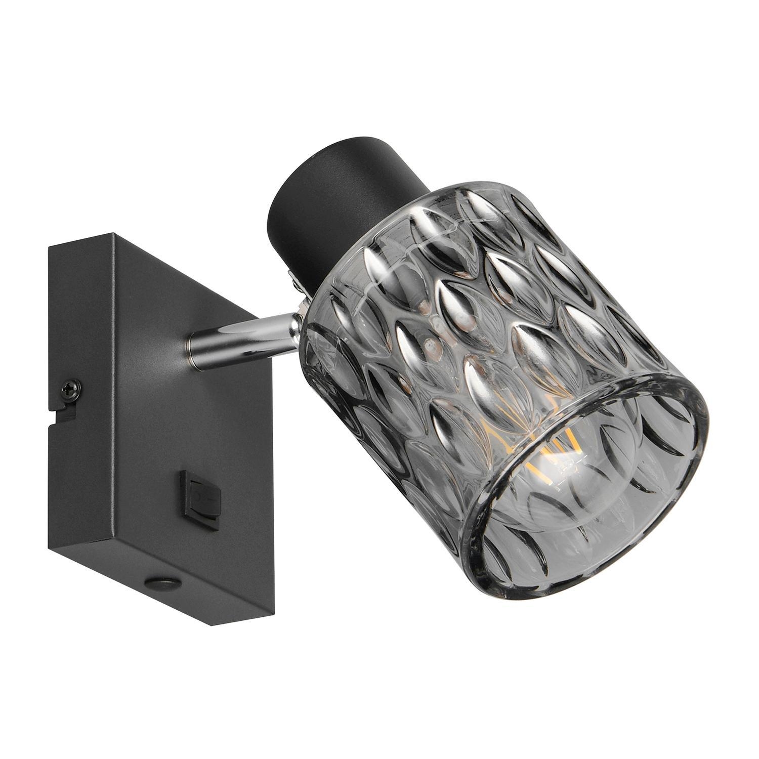 Die Wandleuchte JACK der Marke Reality Leuchten besteht aus schwarzem Metall und ist mit einem verstellbarem Lampenschirm aus rauchfarbenem Glas ausgestattet. Die Breite beträgt 10 cm, die Höhe 16 cm und die Tiefe 9 cm. Der Strahler ist für ein Leuchtmittel des Typs E27 mit einer Leistung von bis zu maximal 10 Watt geeignet. Das Leuchtmittel ist nicht im Lieferumfang enthalten, kann jedoch ausgetauscht werden.