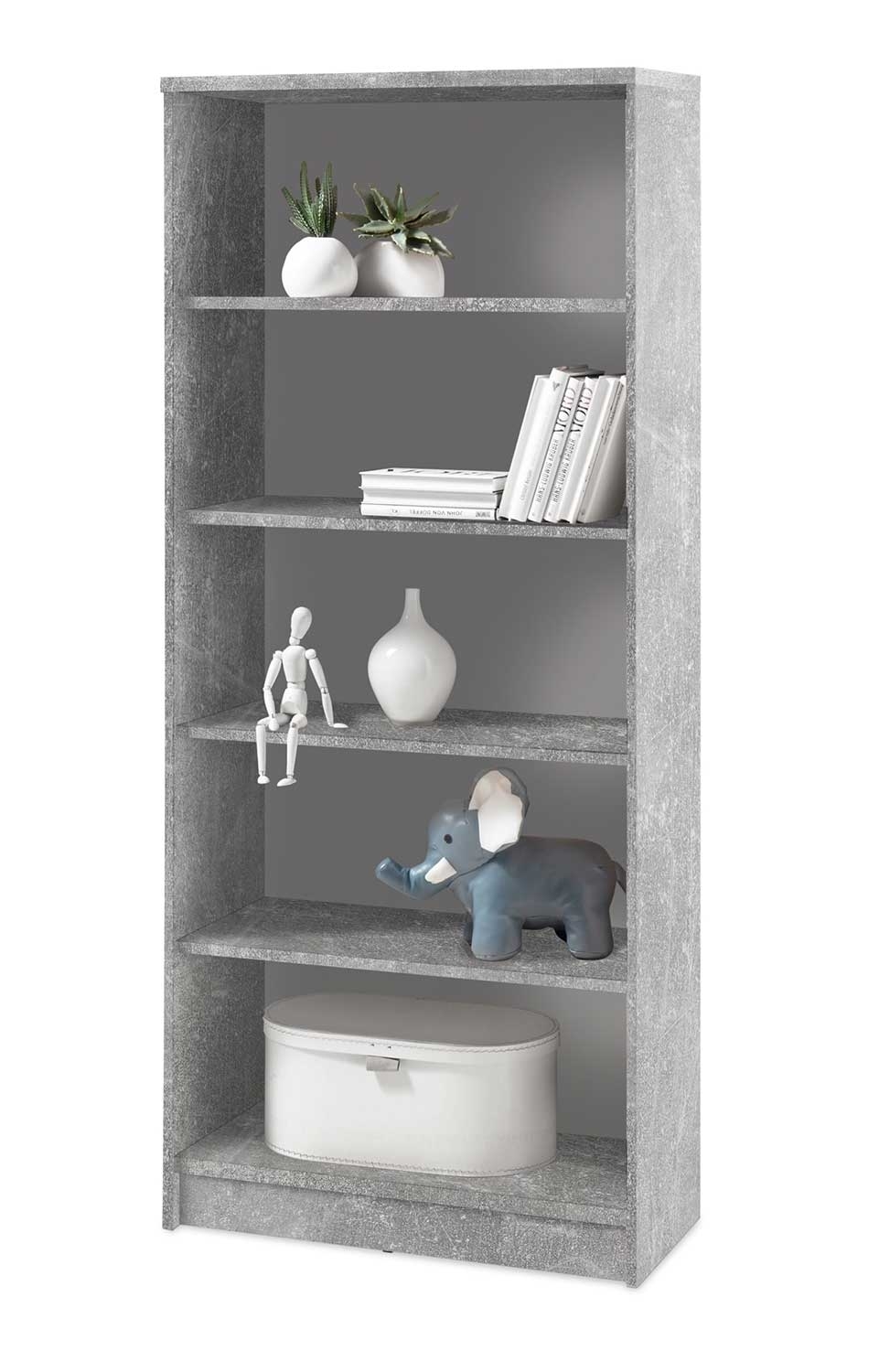Das Regal in Betondekor mit einer Rückwand in weiß verfügt über einen festen Boden und drei 3-fach höhenverstellbare Einlegeböden. Dies ermöglicht eine optimale Anpassung an die jeweiligen Bedürfnisse. Der zweite Boden von oben ist nicht verstellbar.
