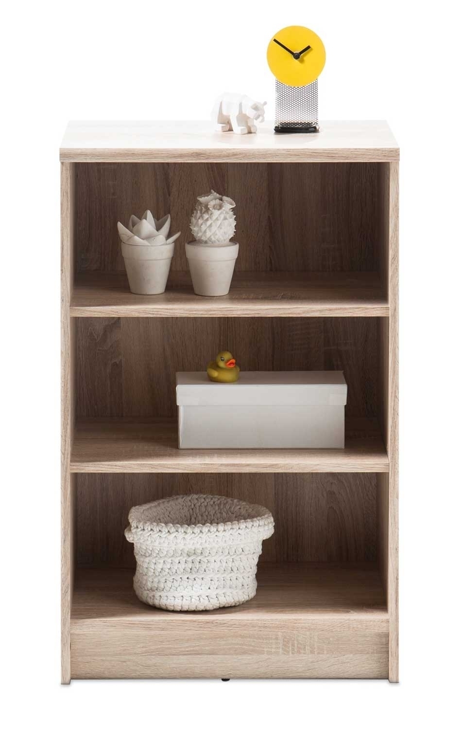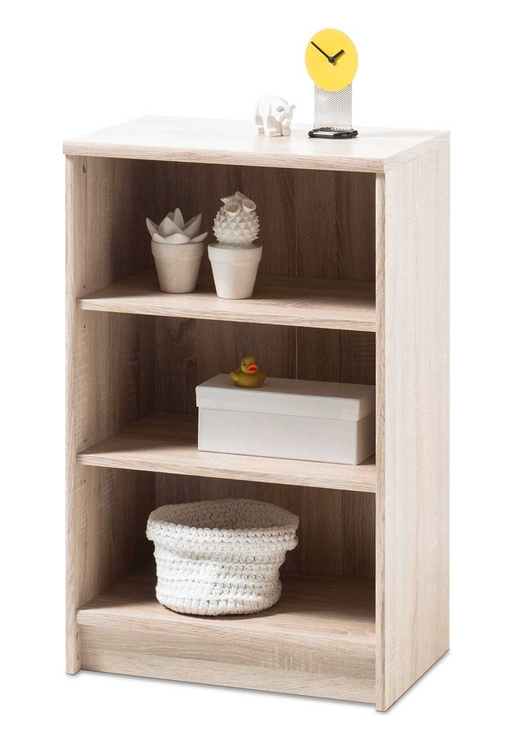 Das Regal in Eichedekor Sonoma verfügt über zwei 3-fach höhenverstellbare Einlegeböden. Dies ermöglicht eine optimale Anpassung an die jeweiligen Bedürfnisse.