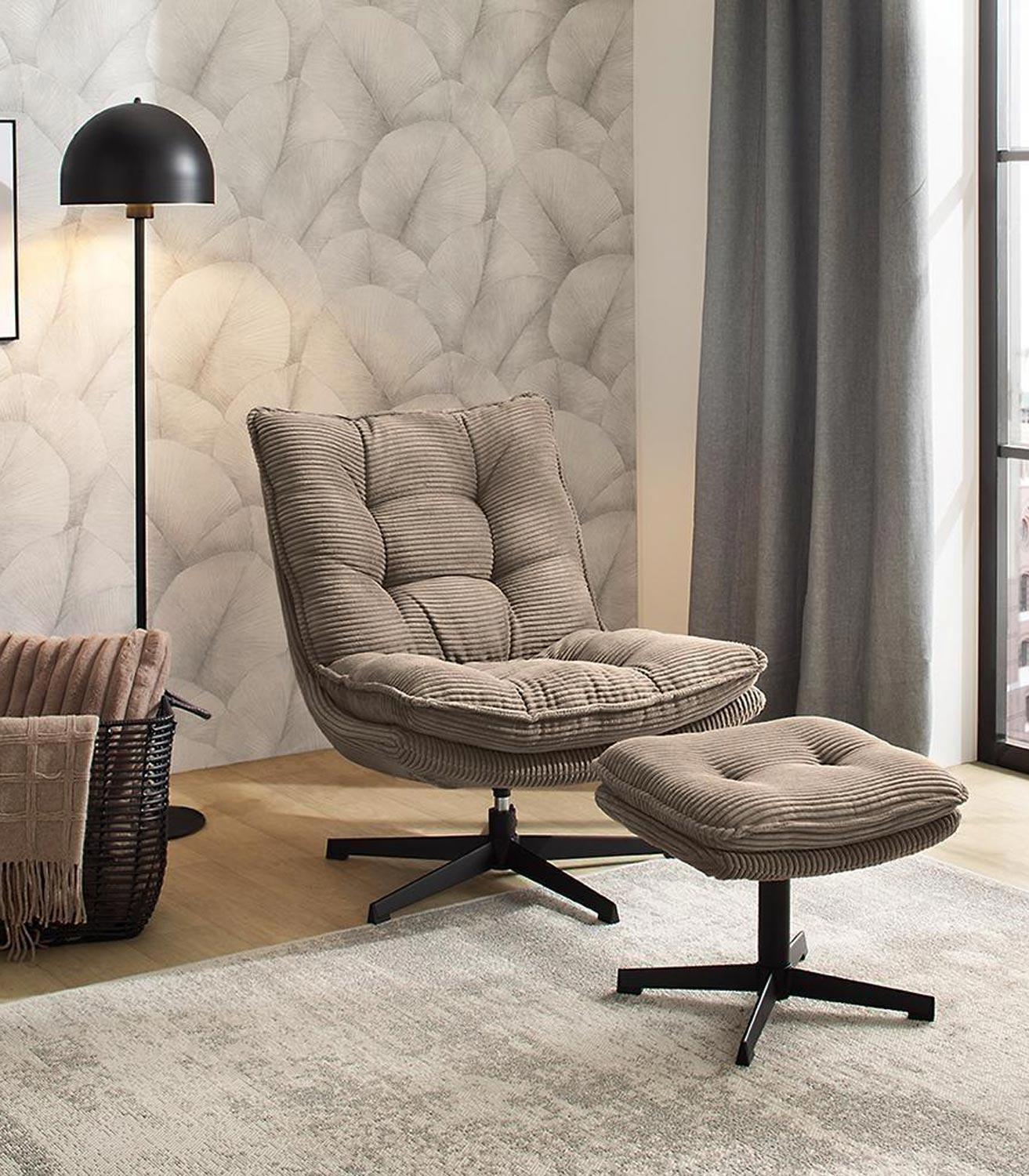 - Relaxsessel und Hocker mit Cordbezug in Taupe