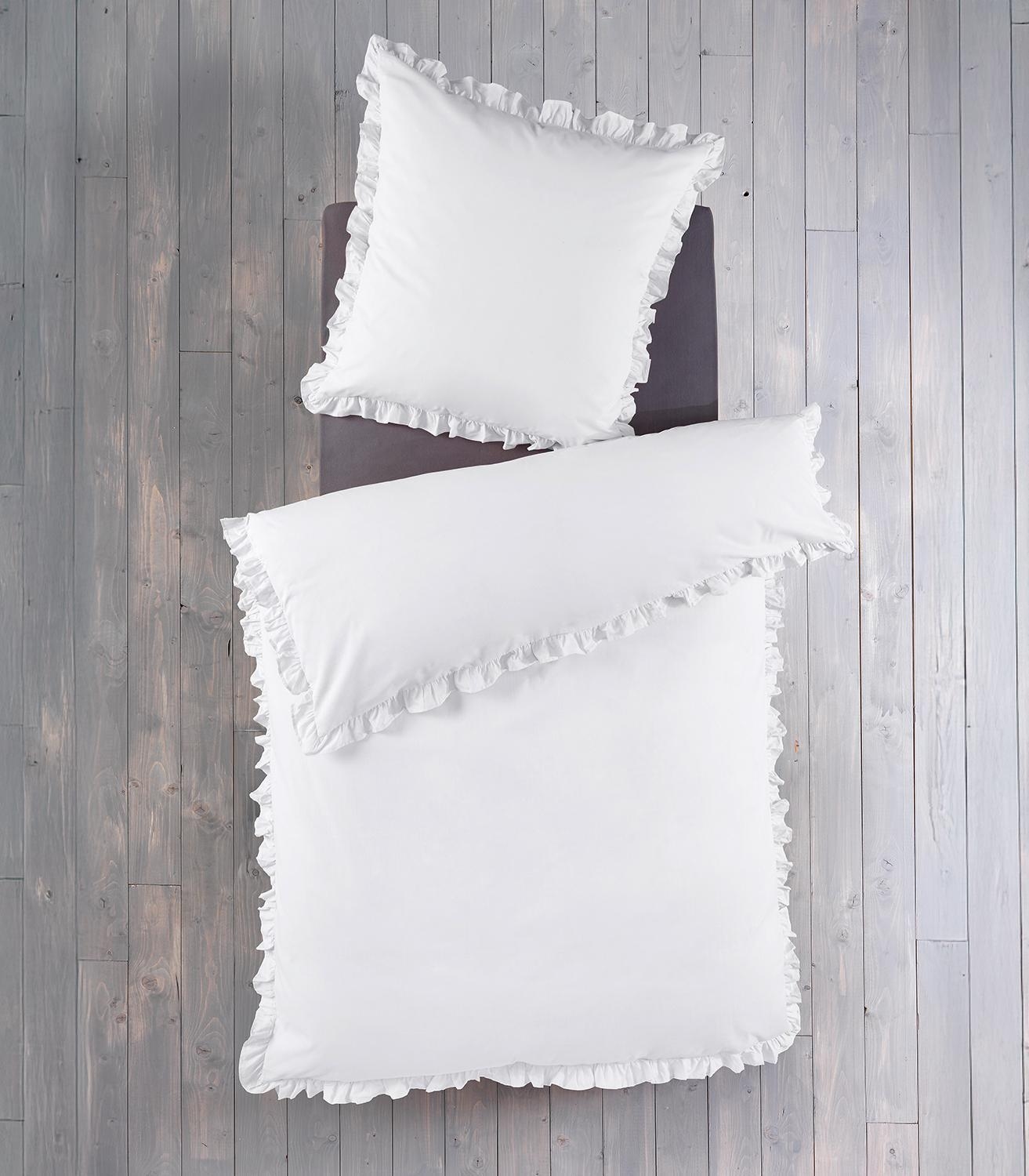 - Renforce-Bettwäsche in Weiß mit Rüschen