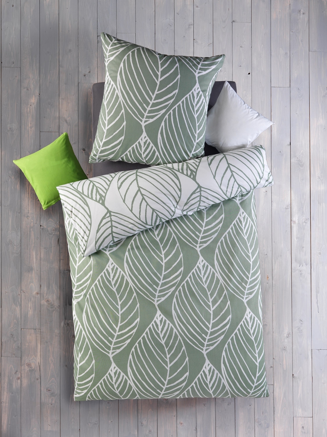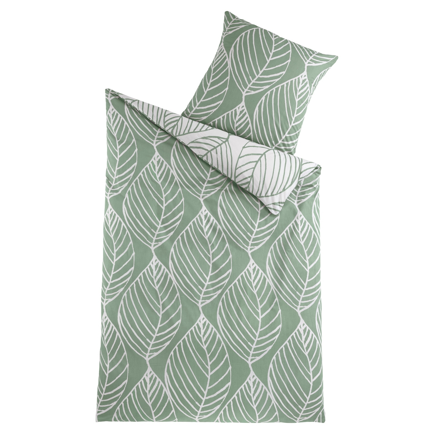 Die Renforce-Wendebettwäsche LEGOLAS bringt Frische und Natur in Ihr Schlafzimmer. Die Bettwäsche in Grün und Weiß ist aus weicher Baumwolle gefertigt und zeigt ein ansprechendes Blättermotiv. Ausgestattet mit einem praktischen Reißverschluss, lässt sie sich leicht beziehen. Sie ist bis 40 °C waschbar und trocknergeeignet. Der Deckenbezug misst 155 x 220 cm, der Kissenbezug 80 x 80 cm.