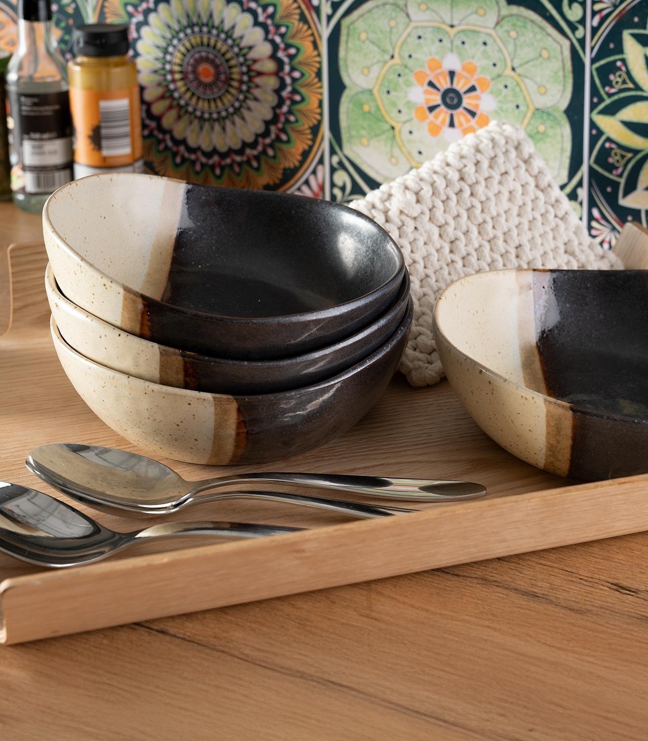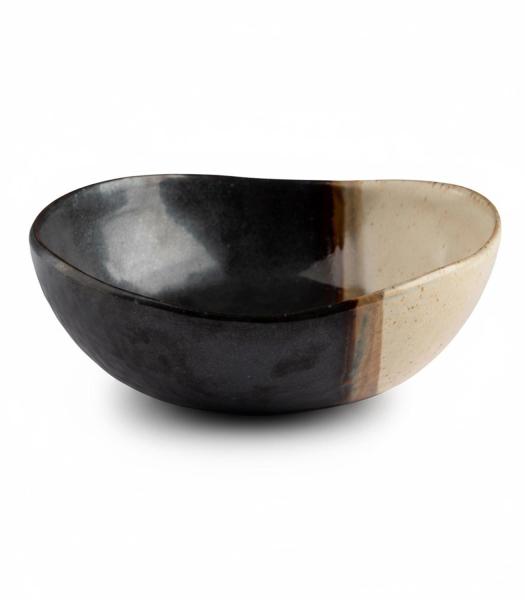 Die Schale in Schwarz und Braun besticht durch ihre schlichte Eleganz und matte Oberfläche. Mit einem Durchmesser von 18 cm eignet sie sich ideal zum Servieren von Salaten, Suppen oder Snacks. Gefertigt aus hochwertiger Keramik überzeugt sie durch ihre moderne Optik und angenehme Haptik. Das dezente Farbenspiel in Schwarz und Greige macht sie zu einem stilvollen Highlight auf jedem gedeckten Tisch.
